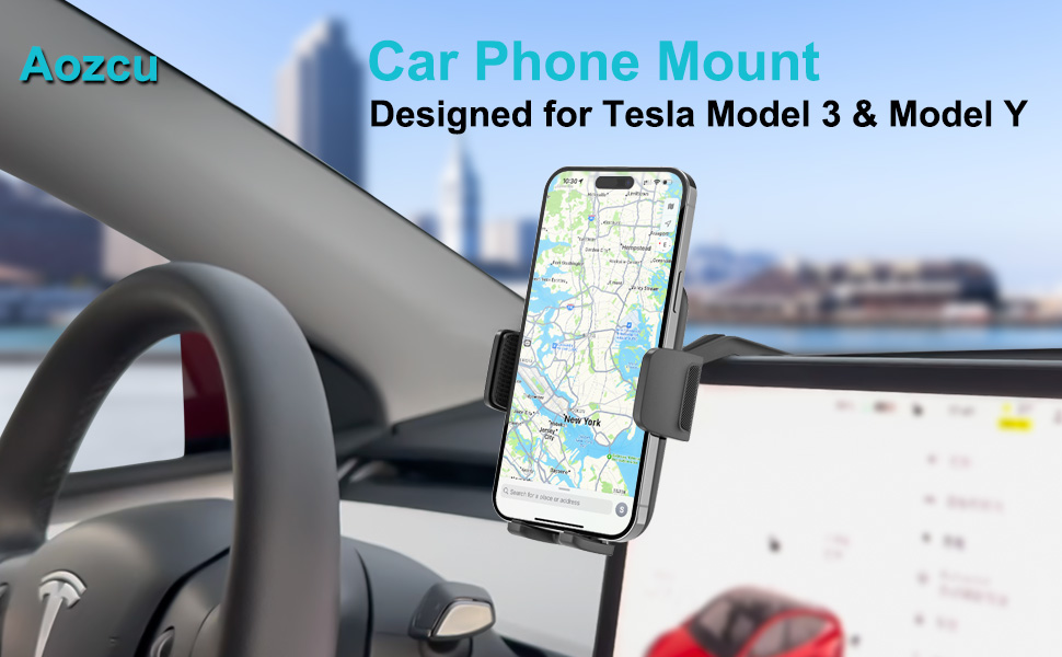 حامل هاتف Aozcu Tesla للطراز Y Model 3، [الطرق الوعرة مستقرة] حامل الهاتف الخلوي للسيارة للوحة أجهزة القياس لشاشة Tesla، مهد Tesla بدون استخدام اليدين لهواتف iPhone 15 14 13 12 Pro Max 4-7 بوصات