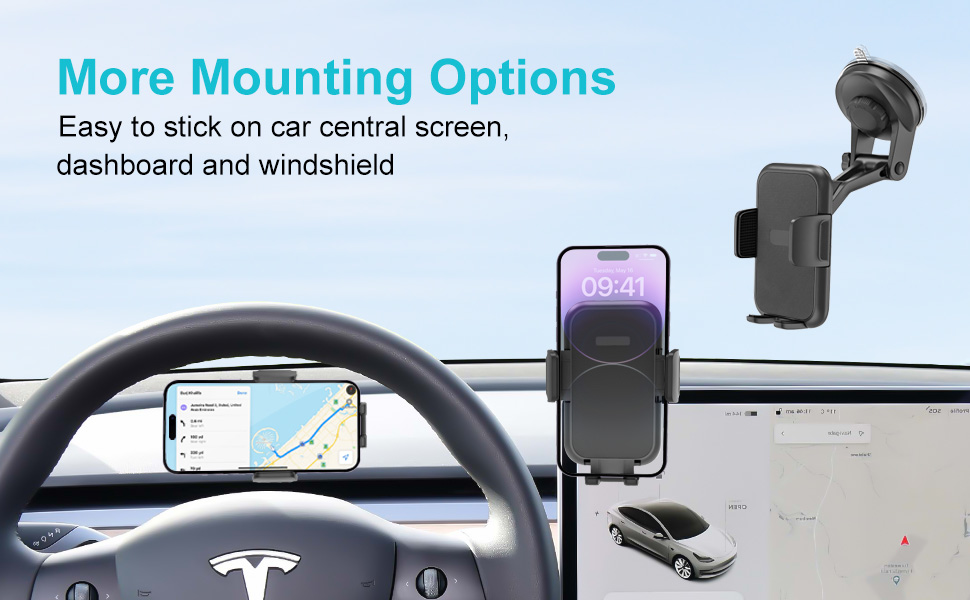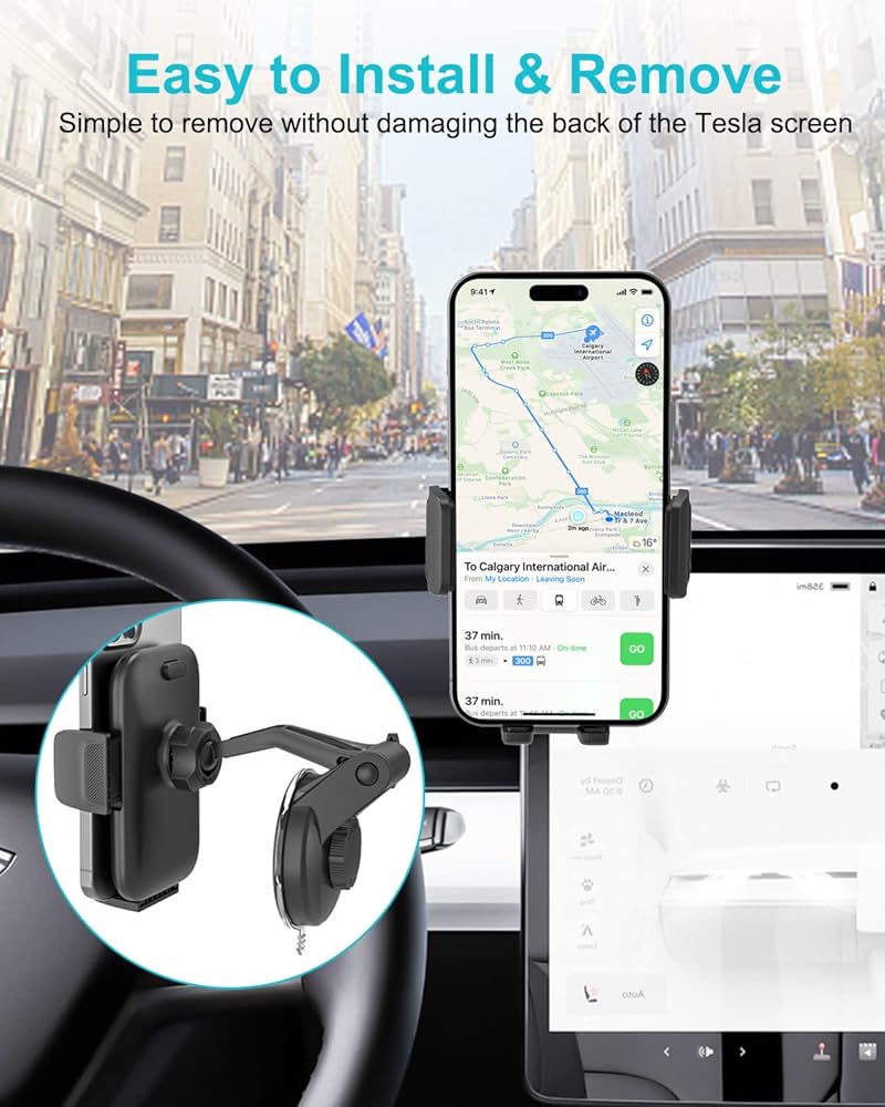 【تركيب ثابت على شاشة تيسلا】تم تصميم حامل الهاتف بالشفط هذا خصيصًا لطراز تيسلا 3/Y، تأكد من تجربة قيادة أكثر سهولة وكفاءة. يستغرق الأمر بضع ثوانٍ فقط، ويمكنك تثبيته على الجزء الخلفي من شاشة اللمس، كما أنه يناسب لوحة أجهزة القياس والزجاج الأمامي للسيارة.