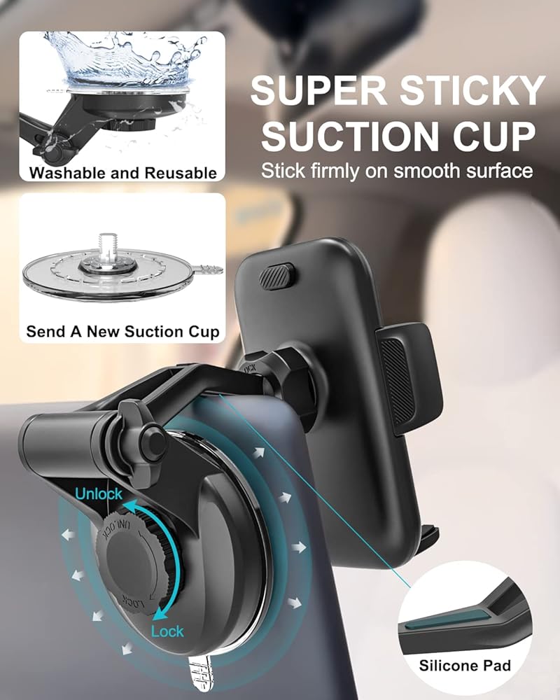 【كوب شفط قوي ولزج *2】يستخدم حامل هاتف سيارة تيسلا كوب شفط معزز بقوة الامتصاص، ويستخدم مادة TPU المقاومة للحرارة، والتي يمكن أن توفر قوة شفط فائقة الثبات وطويلة الأمد على الأسطح الملساء. هذا الشفط قابل لإعادة الاستخدام وقابل للغسل لاستعادة الالتصاق. كوب شفط بديل جديد يسمح لك باستخدام الحامل لفترة أطول.