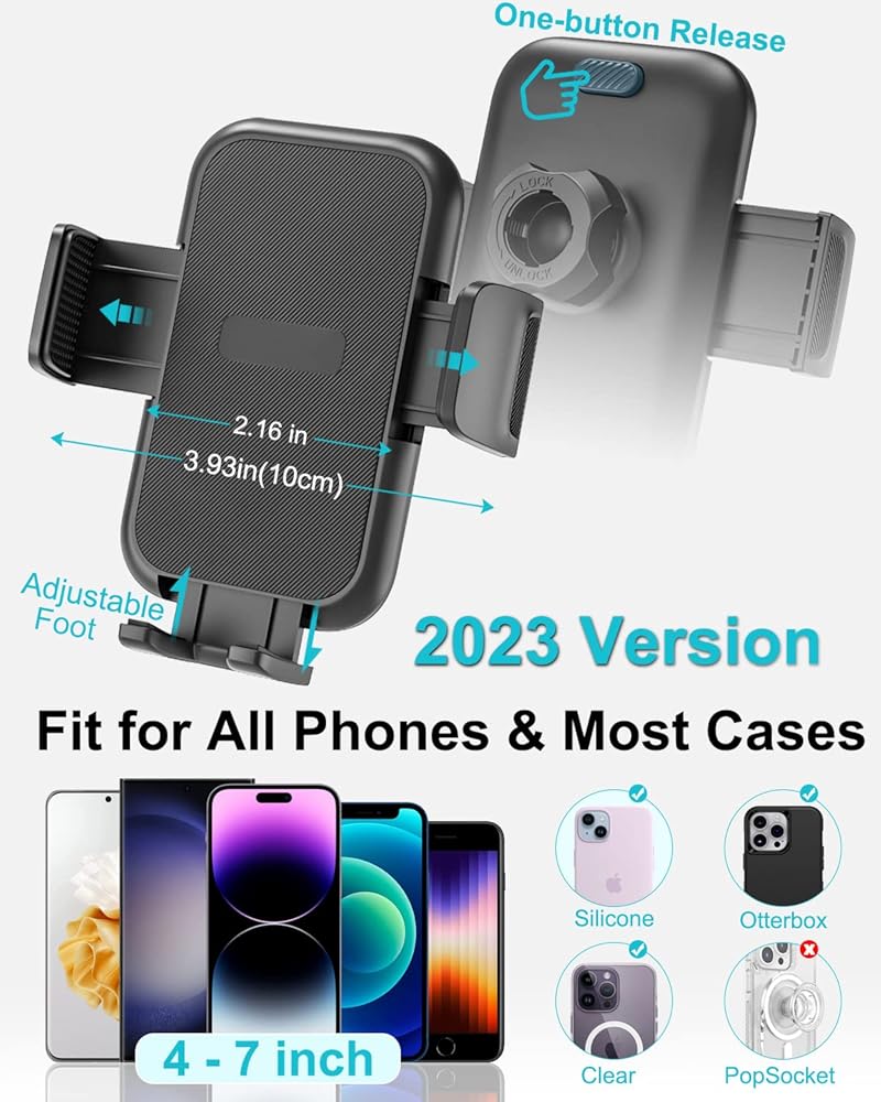 【مناسب لجميع الهواتف المحمولة】يسمح لك نظام التحرير بزر واحد بتحرير الهاتف وتثبيته بسرعة بيد واحدة. حرر يديك تمامًا واستمتع بالقيادة الآمنة. يتوافق حامل هاتف تيسلا هذا مع جميع الهواتف مقاس 4 - 7 بوصات والحافظات الأكثر سمكًا (باستثناء حافظة حامل الحلقة وحافظة البوب وسلسلة Fold/z Flip).