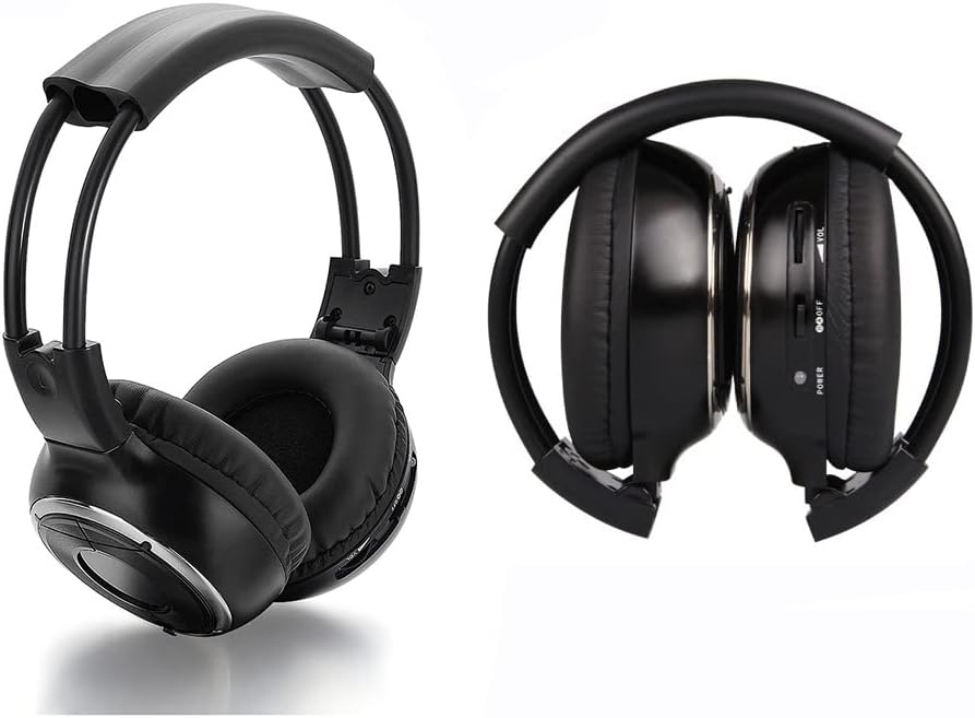 سماعات AYVVPII IR للسيارة DVD، سماعات رأس السيارة اللاسلكية، سماعة رأس الأشعة تحت الحمراء العالمية 2 قناة لنظام الترفيه في السيارات قطعتين