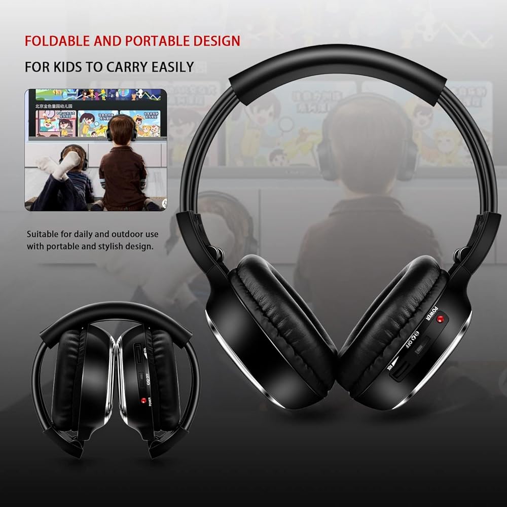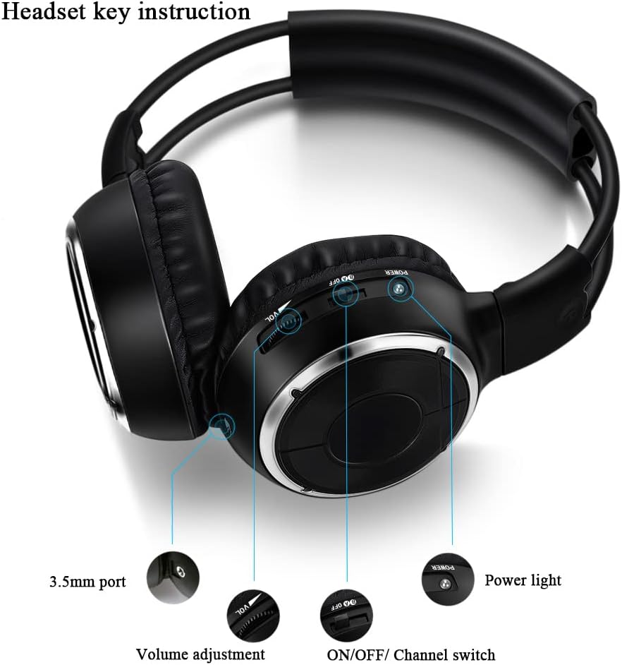 1) قناة مزدوجة (قناة A أو B) متصلة لأنظمة فيديو IR DVD/Video Systems 2) جودة صوت واضحة لكل من القناة وبدون تداخل 3) إيقاف تلقائي بعد 10 دقائق بدون إشارة لضمان أقصى عمر للبطارية 4) عصابة رأس متعددة المستويات، مدخل صوت 3.5 مم لأي جهاز MP3، آيبود/آيباد وأجهزة محمولة