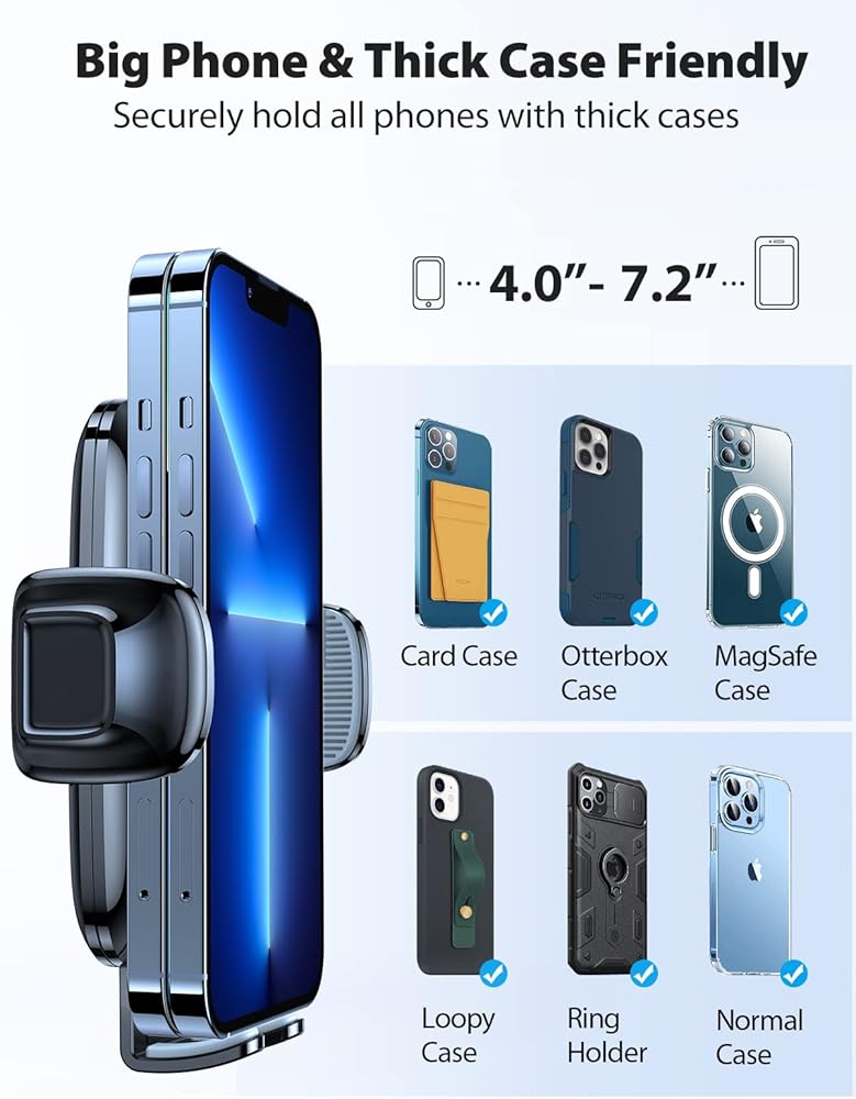 【𝗧𝗵𝗶𝗰𝗸 𝗖𝗮𝘀𝗲 𝗮𝗻𝗱 𝗕𝗶𝗴 𝗣𝗵𝗼𝗻𝗲 𝗙𝗿𝗶𝗲𝗻𝗱𝗹𝘆】: تصميم الأذرع العريضة يجعل حامل هاتف السيارة VICSEED مناسبًا لجميع الهواتف الذكية مقاس 4 بوصة إلى 7.2 بوصة والحافظات السميكة. يمكن للدرج السفلي المتين والأوسع أن يدعم أي هاتف وزنه على الطرق الوعرة. سيبقى هاتفك آمنًا وسليمًا في جميع الأوقات. سوف يلبي حامل السيارة هذا احتياجاتك مرة واحدة وإلى الأبد سواء كان الهاتف أو الجراب السميك لديك.