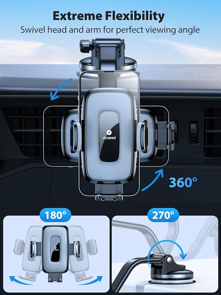 【𝗠𝘂𝗹𝘁𝗶-𝗳𝘂𝗻𝗰𝘁𝗶𝗼𝗻 𝗖𝗮𝗿 𝗣𝗵𝗼𝗻𝗲 𝗠𝗼𝘂𝗻𝘁】: الآن ليست هناك حاجة لقضاء الوقت في البحث عن حامل سيارة الذي يناسب احتياجاتك على أمازون. يمكن لحامل الهاتف المحمول هذا ذو المظهر الفاخر أن يفعل كل شيء. قامت VICSEED بتجهيز أداة التثبيت بالشفط ومشبك فتحة التهوية لحامل الهاتف في السيارة بعناية. يمكن تثبيته على لوحة القيادة أو الزجاج الأمامي أو فتحات الهواء لتلبية راحتك ومتطلباتك. اختيار جيد لمعظم السيارات والشاحنات الصغيرة وسيارات الدفع الرباعي والشاحنات؛ مساعد رائع لسائقي Uber وLyft.