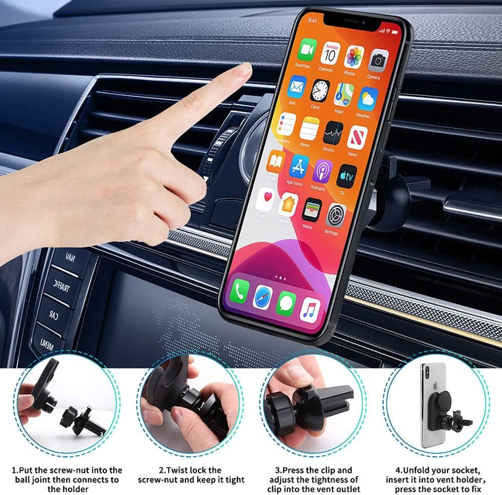 【مشبك تهوية مطور】يوجد زنبرك مدمج في مشبك فتحة تهوية الهواء، ما عليك سوى الضغط على الزر الموجود على المشبك، وسيتم ربط حامل المقبس هذا بإحكام بمعظم الشفرات في أنواع مختلفة من فتحات تهوية السيارة. مع وسادة سيليكون سميكة غير قابلة للانزلاق، يستوعب حامل الهاتف في فتحة السيارة حماية القفل المزدوج ولا يسقط أبدًا.