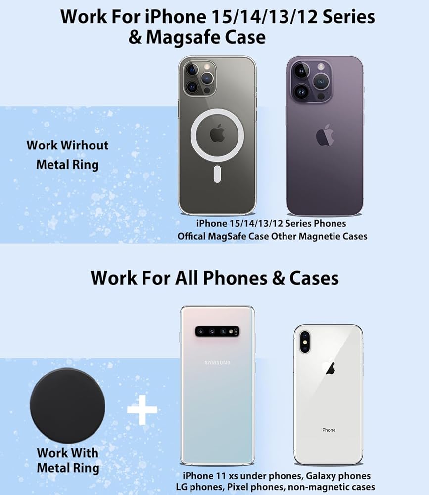 【مغناطيسي للغاية لـ MagSafe】: حامل فتحة تهوية الهواء CR-V. يتم امتصاص المغناطيس الحلقي بقوة لضمان دعم ثابت للهاتف في أي ظروف طريق قاسية. إنه مصمم لـ magsafe ويأتي مع 1 × حلقات حديدية للهواتف غير التابعة لـ Magsafe.