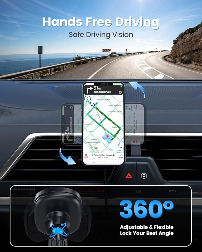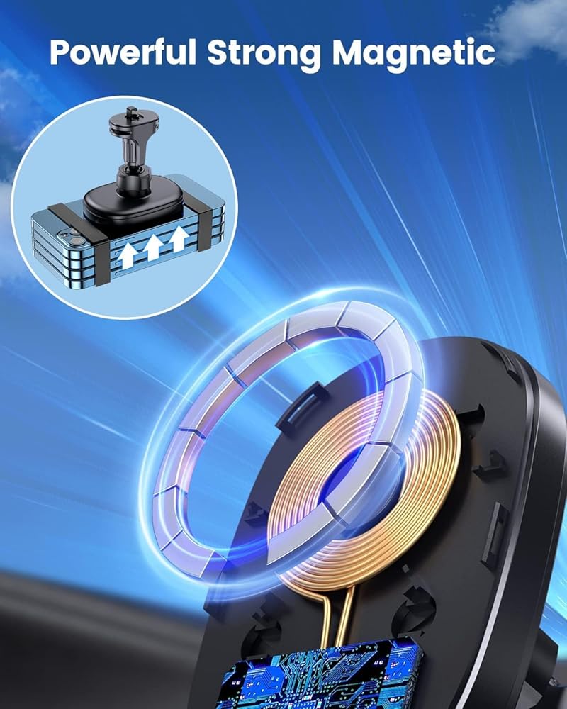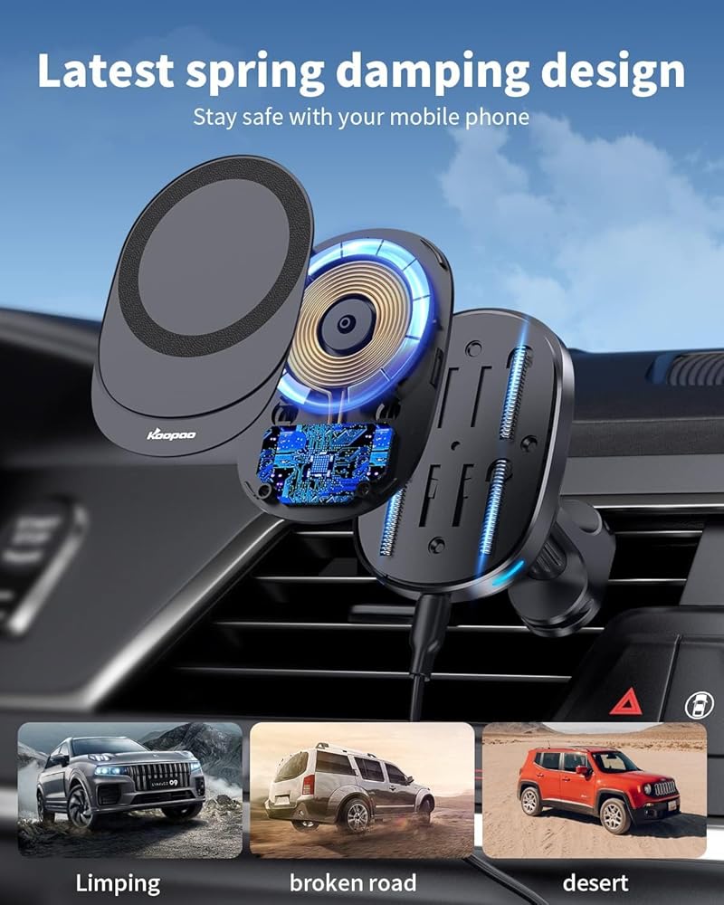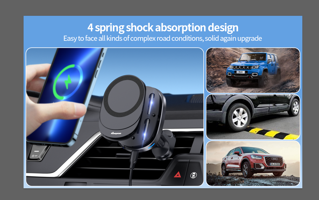 【تصميم مغناطيسي قوي ومقاوم للصدمات】يأتي شاحن السيارة الآمن هذا مع حلقة مغناطيسية قوية، وقوة مغناطيسية قوية قادرة على دعم وزن جميع سلاسل ايفون. أحدث تصميم مدمج 2022 ممتص للصدمات بأربعة نوابض في العالم لن يسقط هاتفك حتى على الطرق الوعرة والموحلة، مما يسمح لك بالانضمام إلى السباق أو الذهاب على الطرق الوعرة بسهولة