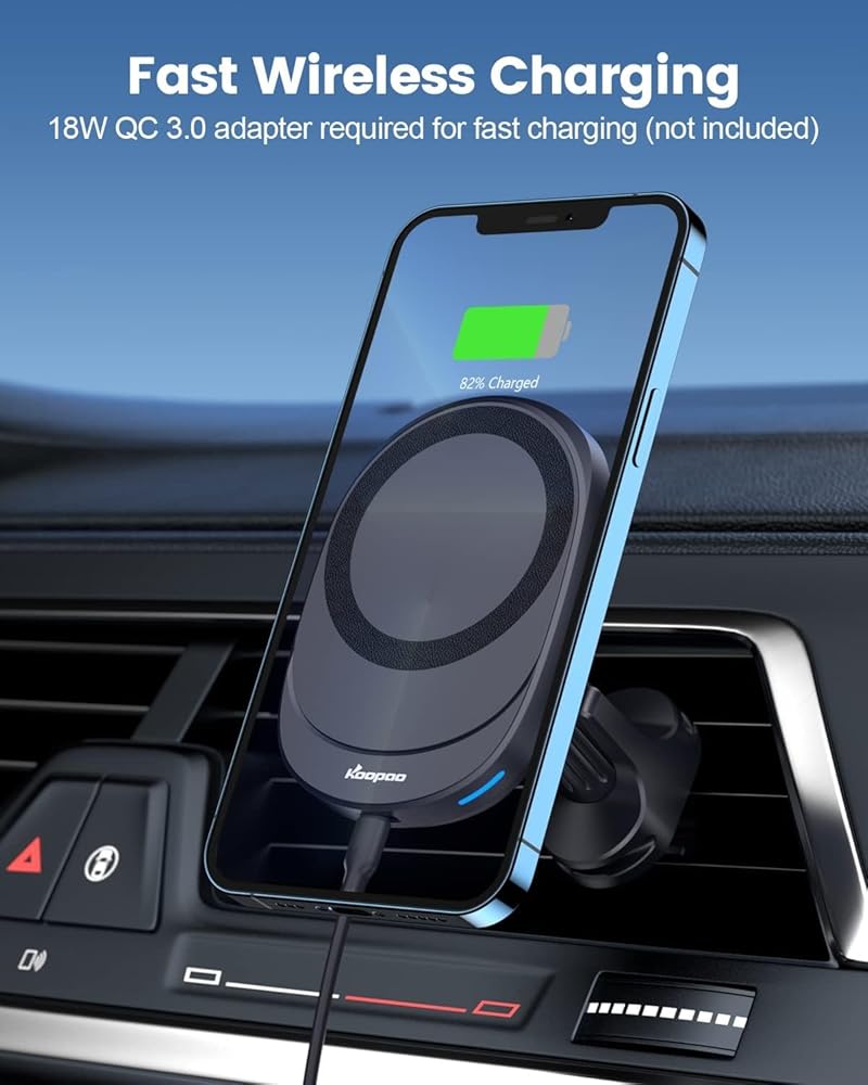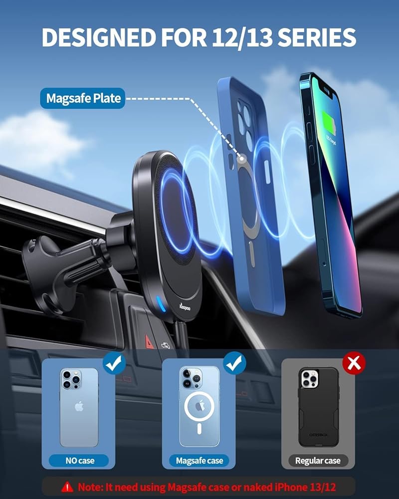 【مصمم لسلسلة ايفون 14/13/12】 تم تصميم شاحن السيارة اللاسلكي المغناطيسي كوباو خصيصًا لهاتف ايفون 13 برو ماكس/13/13 برو/13 ميني، ايفون 12/12 برو/12 برو ماكس/12 ميني (يرجى استخدام حافظة ماج سيف أو ايفون عاري، غير مناسب لحافظات الهواتف العادية الأخرى.)