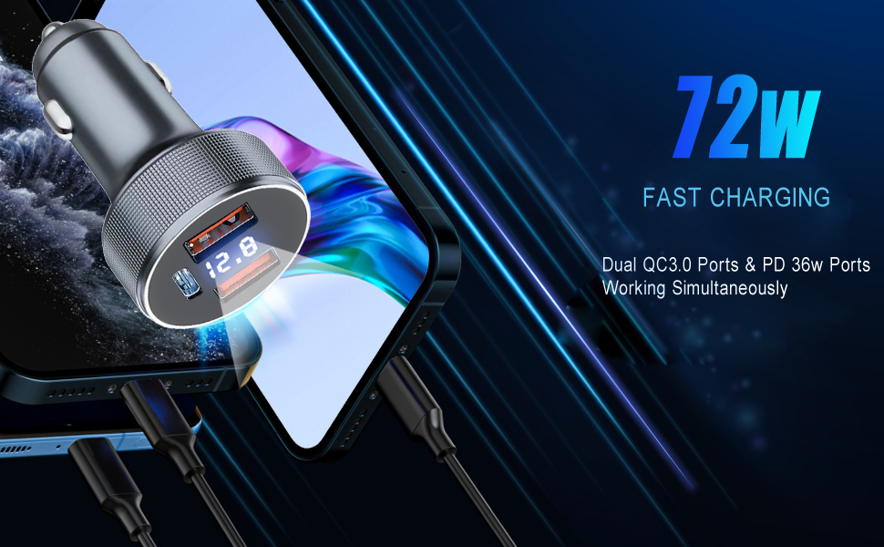 🚗-[مؤشر الجهد LED]- محول السيارة usb c حسب الجهاز المتصل. تأكد من أن الشحن سريع وفعال. شاحن مزدوج سريع 3.0 منفذ إجمالي 3 أمبير كحد أقصى، يقوم مقياس الفولتميتر ولاعة السجائر تلقائيًا بمراقبة بطارية السيارة والنظام الكهربائي ويعرض جهد السيارة على الشاشة، وسوف تعرف حالة البطارية أثناء القيادة.