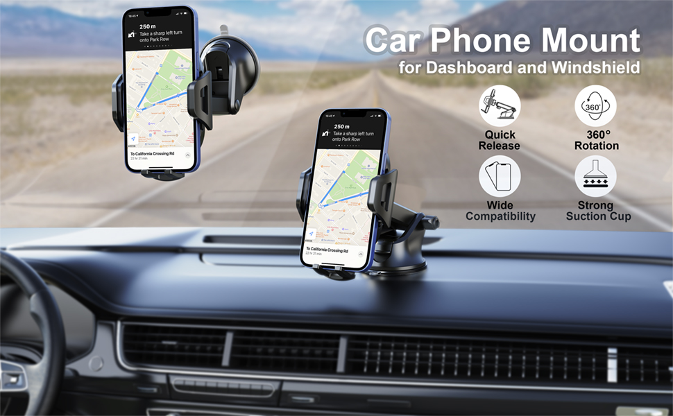 Universal Compatibility: The mount can be used with a variety of smartphones, including iPhone 11, 11 Pro, 11 Pro Max, Xs, Xr, Xs Max, X, 8, 8 Plus, 7, 6, 5, Samsung Edge, Note and all other smart phones and GPS navigations.