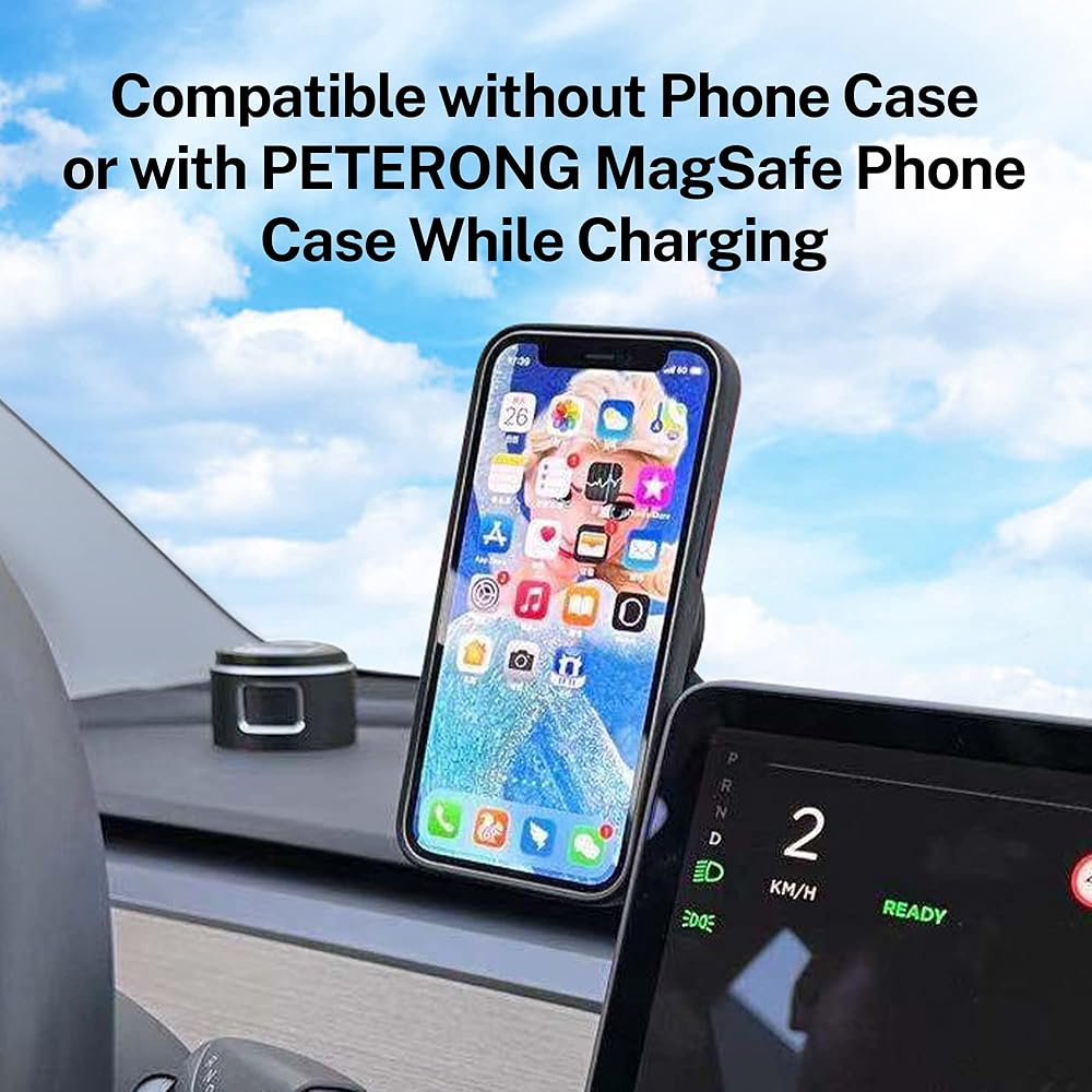 🚗【أوضاع مناسبة】حامل الهاتف العالمي مناسب للسيارات ذات الشاشة المركزية، مثل طراز تسلا 3/X/Y/S ومتوافق مع هاتف 12/13/14. نقترح عليك إزالة جراب الموبايل الخاص بك لاستخدامه إلا إذا كنت تستخدم جراب ماج سيف.