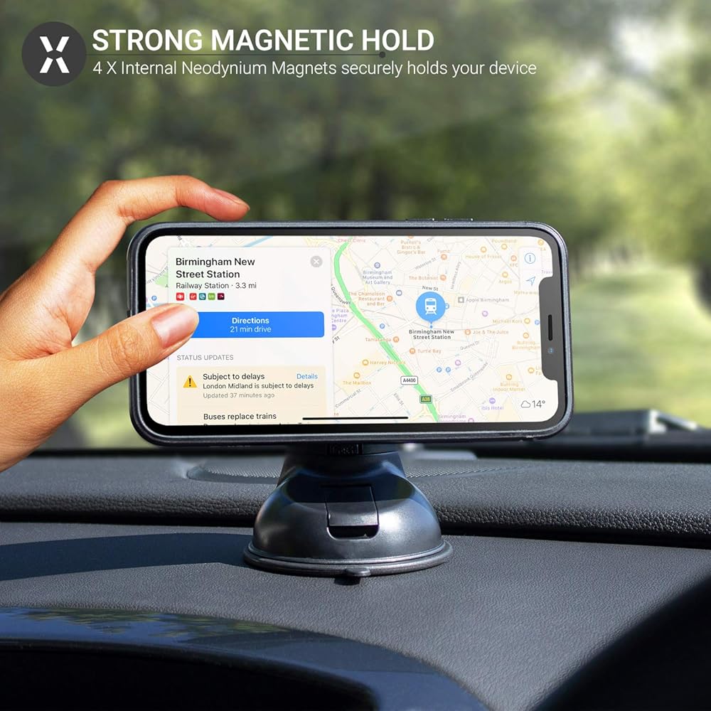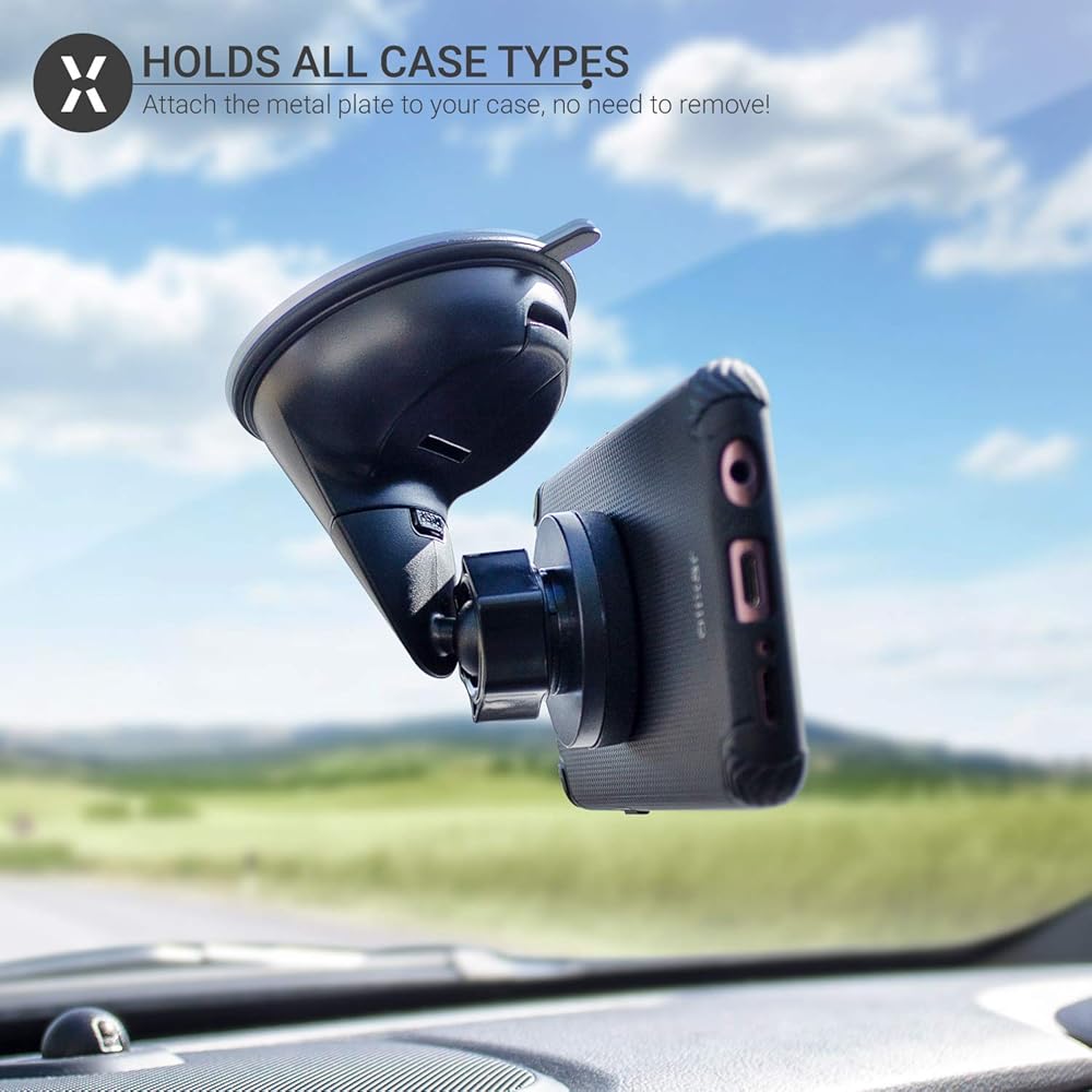 قوي للغاية - حامل هاتف مغناطيسي للسيارة جاهز للسير على الطرق الوعرة بثقة. يحتوي حامل الهاتف للسيارة على مشبك قفل شفط موثوق للغاية يناسب الزجاج الأمامي أو لوحة القيادة الخاصة بك. يتميز بحامل مغناطيسي بقوة لا تضاهى. (تتوفر ملصقات مغناطيسية للهاتف)