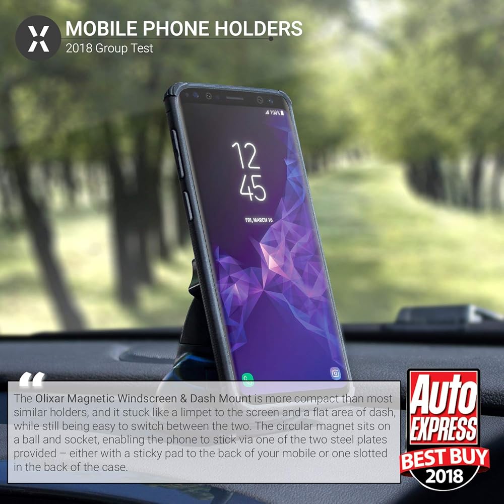 حامل هاتف السيارة المغناطيسي من أوليكسار لزجاج السيارة أو لوحة القيادة - (ملصقات مغناطيسية لتقديم الهاتف) - قوي وسهل الاستخدام - حامل سيارة أوليكسار - عالمي