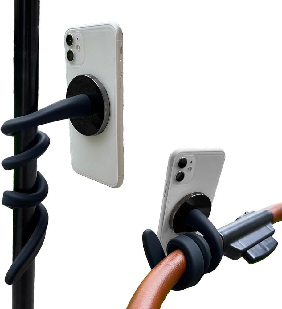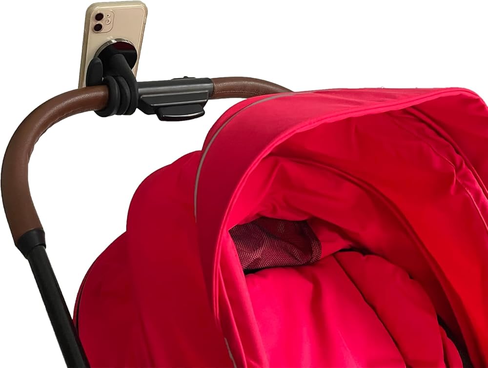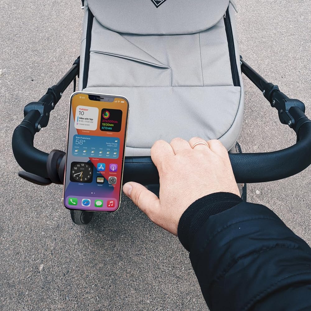 حامل هاتف لعربة الأطفال مغناطيسي لجميع الهواتف من WLPREOE - ملائم بشكل ثابت وآمن على المقود - حامل تثبيت للهاتف مع ذراع مرن غير قابل للانزلاق - أيضًا لجهاز المشي وسيارة الجولف - بيد واحدة باستخدام الهاتف
