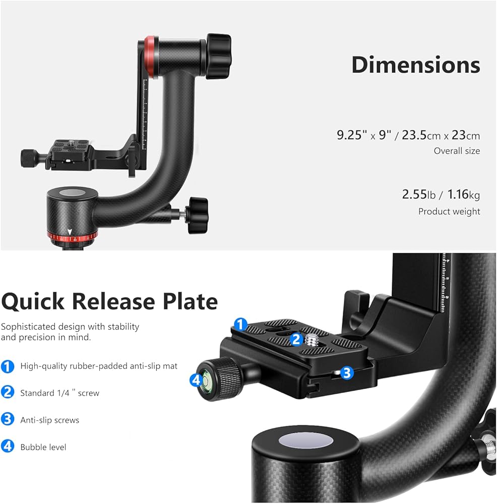 【لوحة سريعة الفك】 تربط لوحة الفك السريع مجموعة واسعة من كاميرات دي اس ال ار والكاميرات غير العاكسة وكاميرات الفيديو من خلال برغي التثبيت 1/4 انش - 20. تحمي لوحة التثبيت المبطنة بالمطاط جهازك من الخدوش. يتيح لك مستوى الفقاعات الحصول على التركيبة الدقيقة