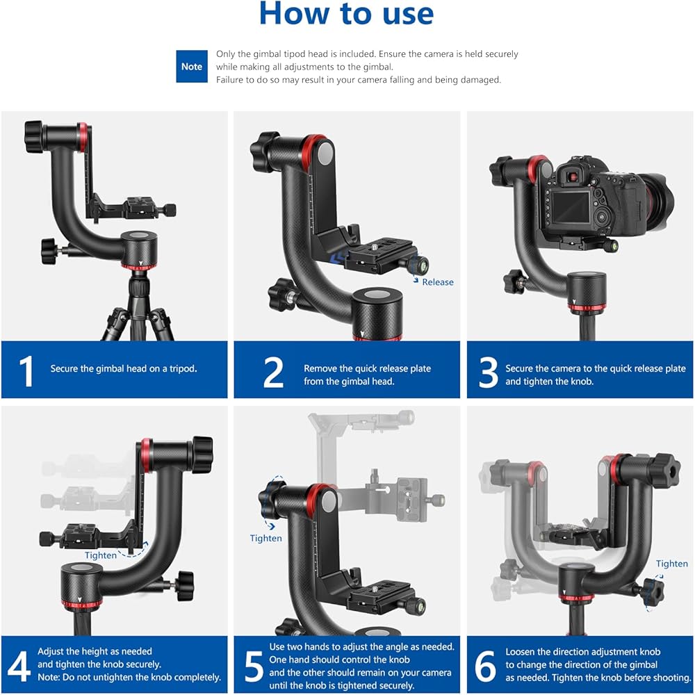 【متين وخفيف الوزن】 مصنوع بقوة من ألياف الكربون ويتميز بآلية تحمل، يمكن لرأس جيمبال ثلاثي القوائم من نيوير GM100 دعم كاميرا دي اس ال ار احترافية كاملة الإطار وعدسة مقربة ثقيلة تصل إلى 30 باوند (13.6 كجم). وزن 2.55 باوند (1.16 كجم) فقط، يمكن وضع GM100 داخل حقيبة الكاميرا الخاصة بك والذهاب إلى أي مكان معك دون أن يسبب الكثير من العبء (ملاحظة: امسك الكاميرا عند فك المقبض، وإلا قد تسقط الكاميرا وتكسر)