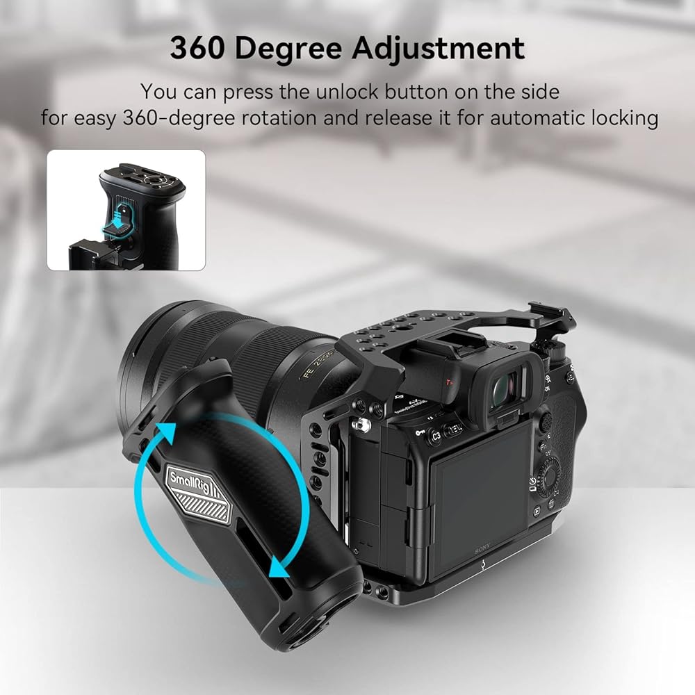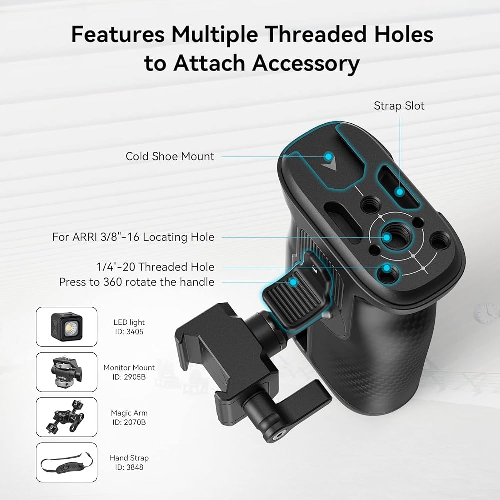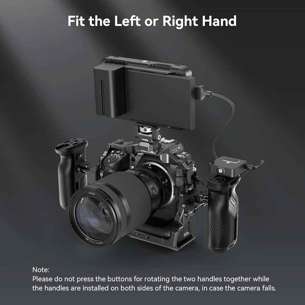 2. يرجى عدم الضغط على الأزرار لتدوير المقبضين معًا أثناء تثبيت المقابض على جانبي الكاميرا، في حالة سقوط الكاميرا
