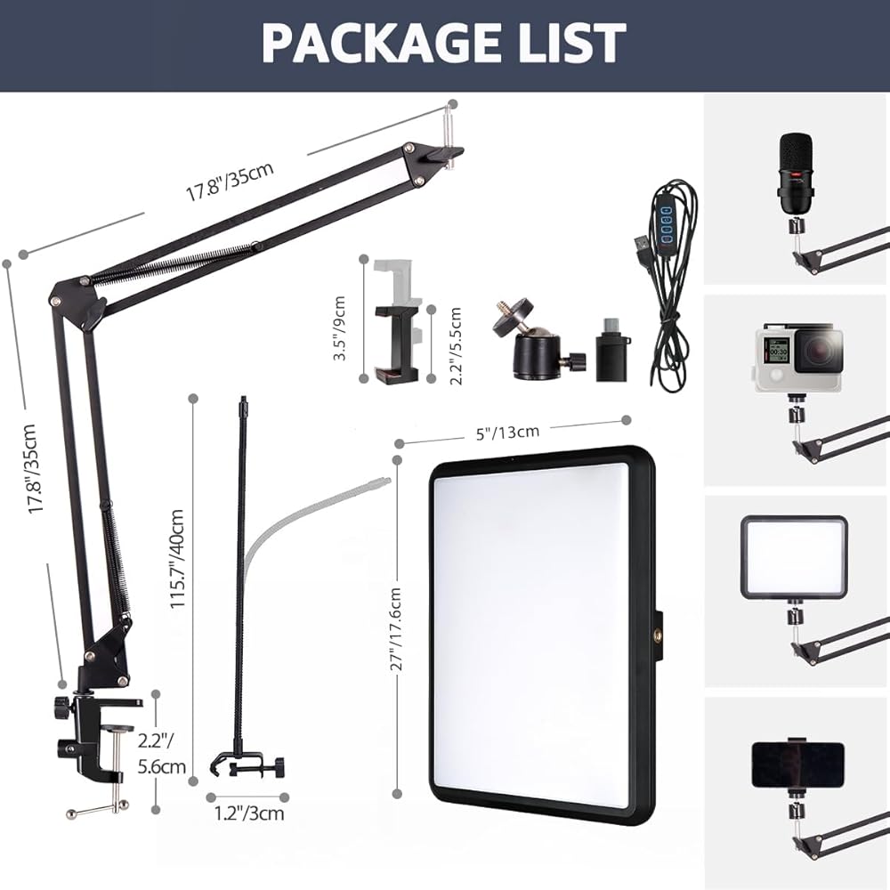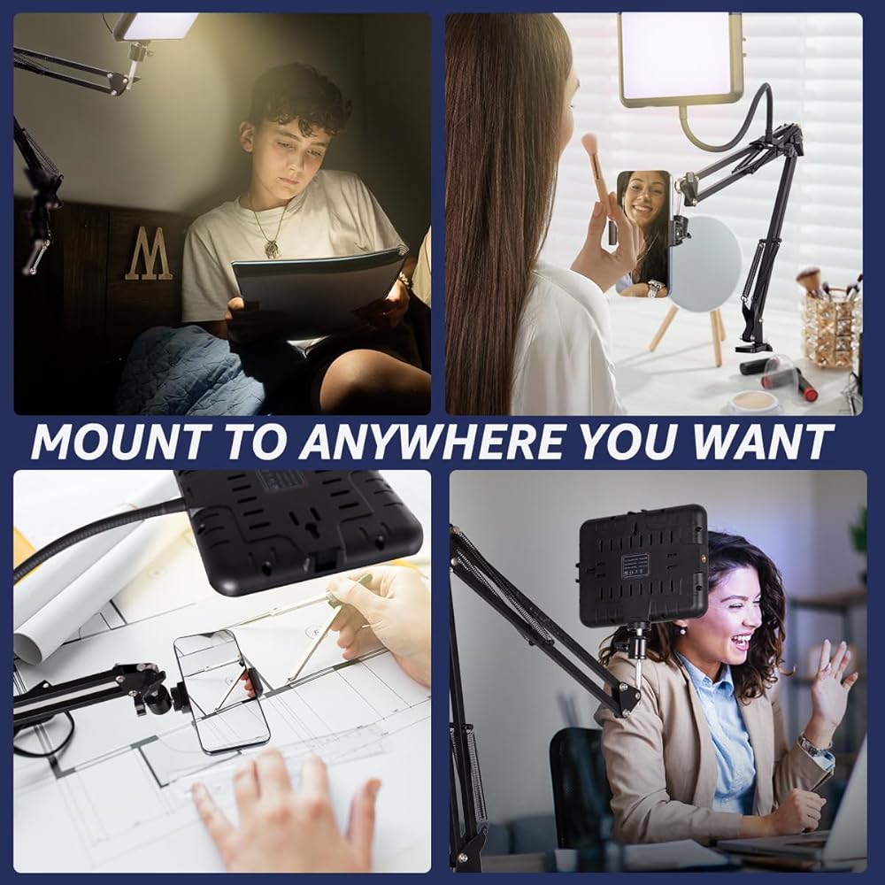 【إضاءة متعددة الوظائف】إن ضوء مؤتمر الفيديو هذا ليس مفيدًا فقط في تجميل مظهرك عندما يكون لديك أي احتياجات ضوئية. الإضاءة الناعمة القوية بقدرة 15 وات التي يوفرها هذا المكتب LED تضيء وجهك بشكل لطيف وحيوي عند العمل عن بعد، واجتماعات التكبير/التصغير، والتدريس عبر الإنترنت، ومكالمات الفيديو، والندوات عبر الإنترنت، وتدوين الفيديو، والبث المباشر ومشاريع التصوير. كما أنها تساعد كثيرًا في الأعمال اليدوية والطلاء والمانيكير وما إلى ذلك. تعمل بشكل مثالي كإضاءة لسطح الطاولة.