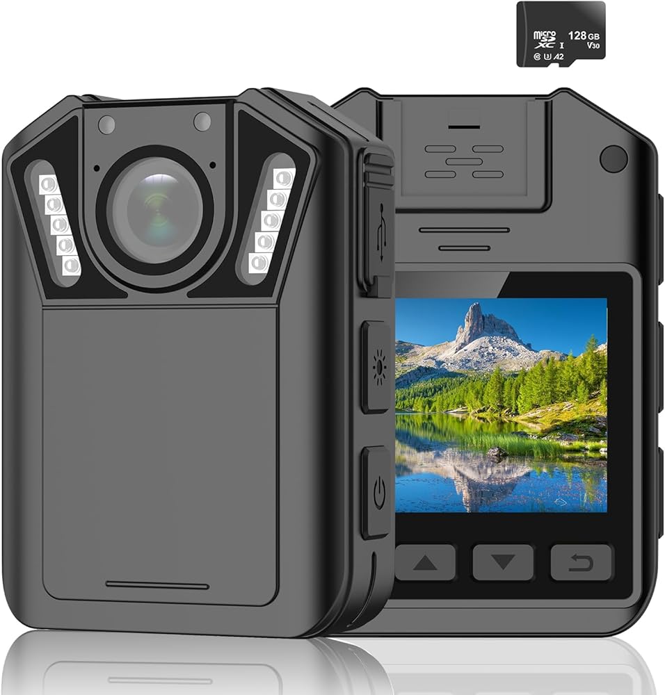كاميرا maigevi 128G يتم ارتداؤها على جسم الشرطة لإنفاذ القانون، كاميرات الجسم يمكن ارتداؤها مع مشبك، كاميرا الجسم 1080 بكسل، تسجيل لمدة 10 ساعات، كاميرا الجسم للمدنيين والشرطة