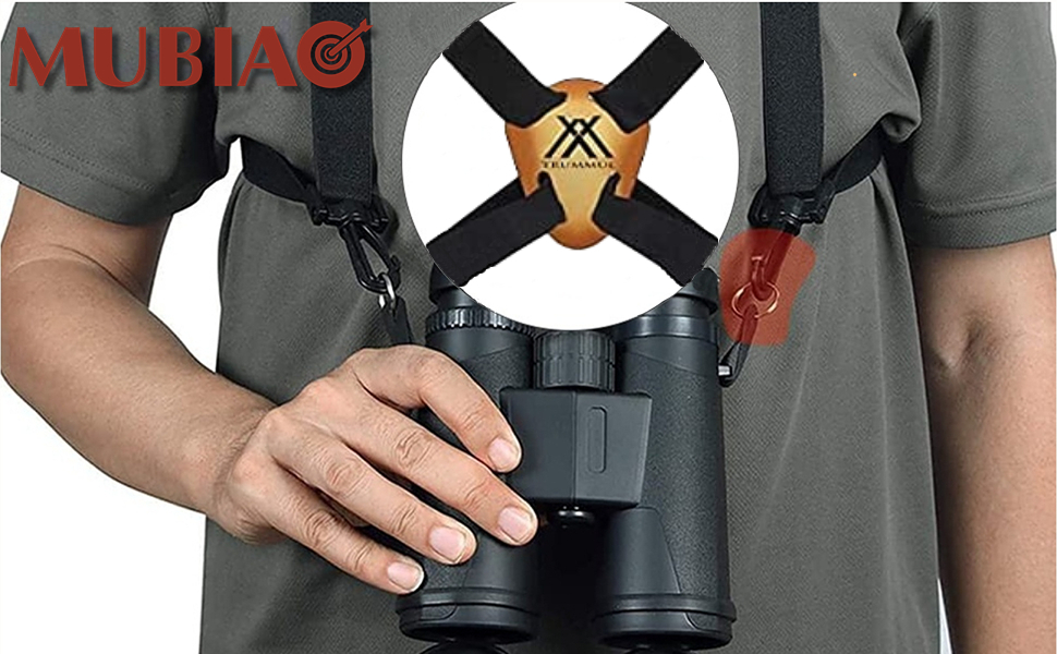 مريح وموفر للجهد - التصميم المتقاطع لحزام المناظير يوزع الضغط بالتساوي على الرقبة والكتفين، مما يحسن ويخفف بشكل فعال من التعب وعدم الراحة الناجم عن حمل المناظير لفترة طويلة، مما يحرر يديك.