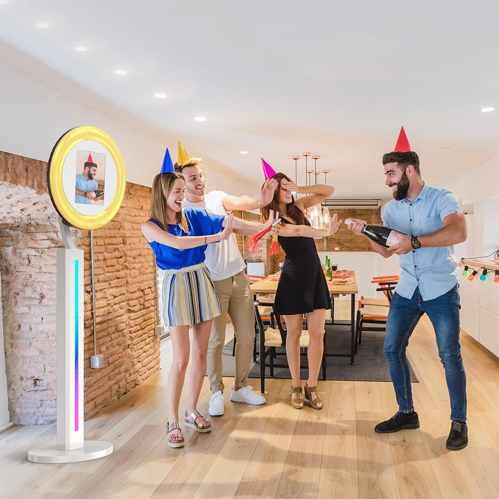 🚀 قابل للتعديل والمرونة: يحتوي الضوء الدائري لحامل كشك الصور ipad على وضع RGB، ويمكن تعديل 3 أوضاع لدرجة حرارة اللون، كما توجد أيضًا أوضاع مزج الألوان الغنية للاختيار من بينها. ويمكن التحكم في آلة كشك الصور من خلال التطبيق (ChackTok) أو جهاز التحكم عن بعد، تتحكم الموسيقى في تأثير الإضاءة، ويمكن أن يتزامن تأثير ضوء RGB مع أي موسيقى، وينبض الضوء على إيقاع أغنيتك المفضلة، مما يخلق جوًا مرحًا ومريحًا للحفلات.