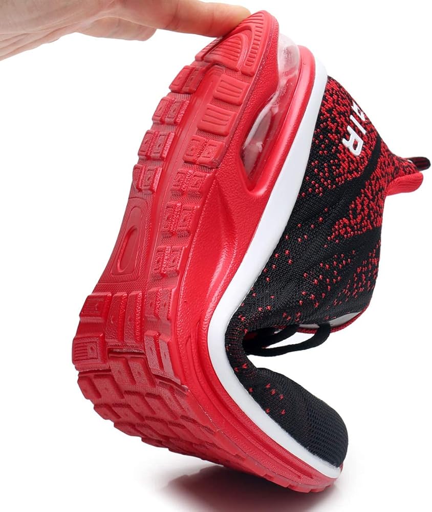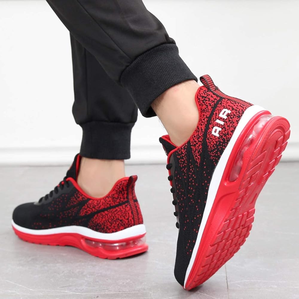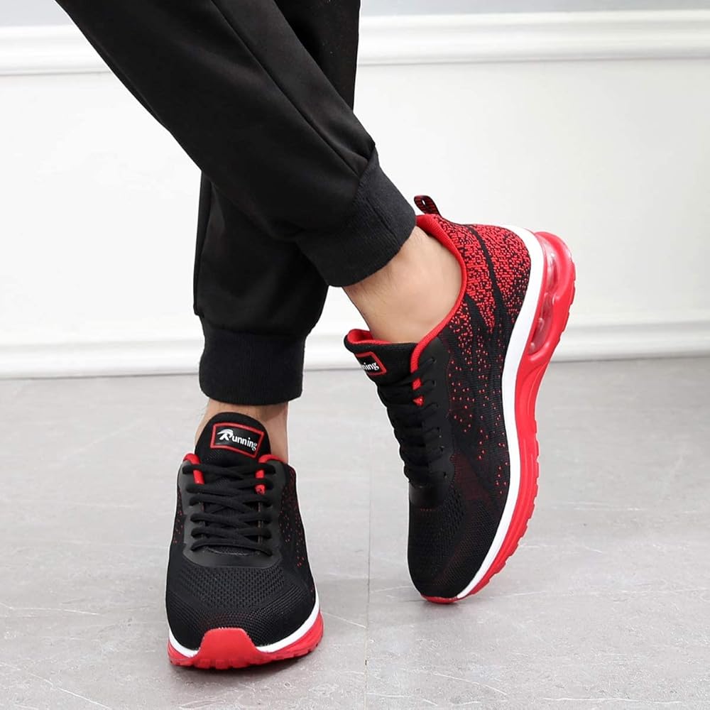 حذاء GANNOU الرجالي للجري الرياضي الهوائي، حذاء رياضي أنيق لممارسة رياضة الركض والتنس واللياقة البدنية (أسود أحمر US 11.5 B(M)