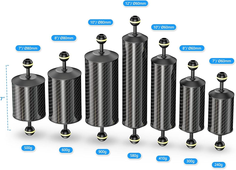 · [ Different Types ] The float arm system has line-up different types, which provides perfect solution to benefit desired underwater weight of your camera system depending on shooting style, conditions.