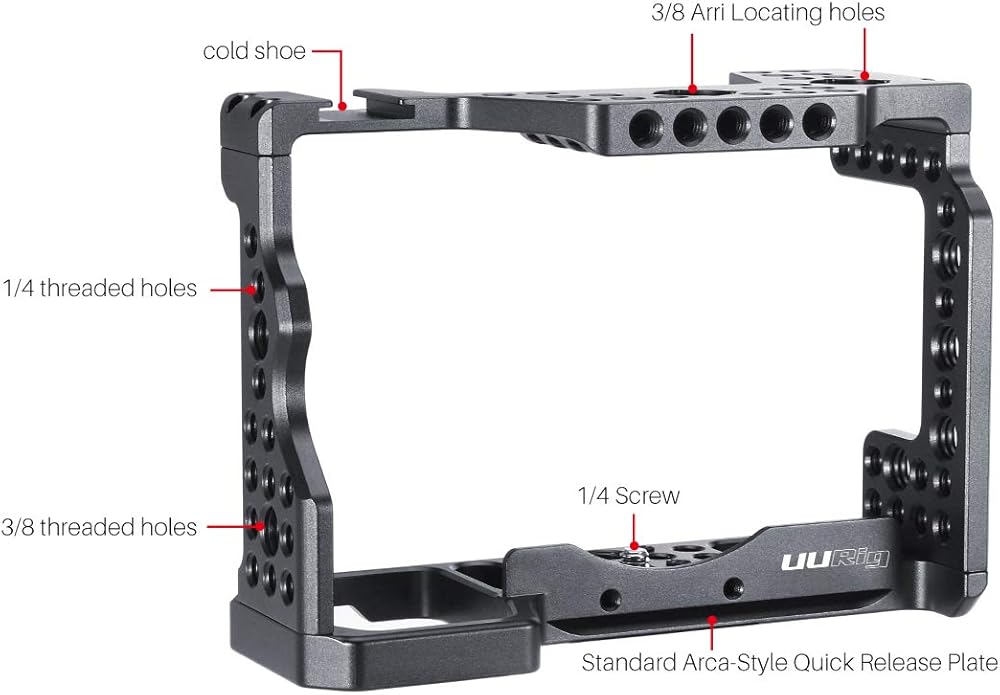 مقبض علوي للكاميرا: مقبض علوي مناسب للتصوير اليدوي متصل بالقفص. يسمح لك الحذاء البارد المدمج وفتحات البراغي 1/4 انش و3/8 انش بتوصيل الميكروفونات وحوامل اي في اف والمزيد.