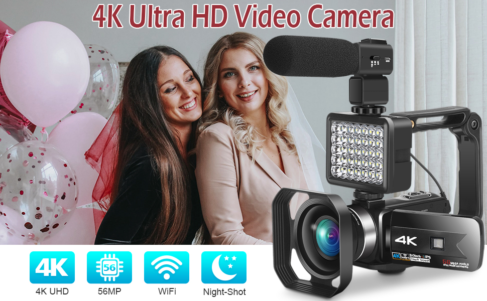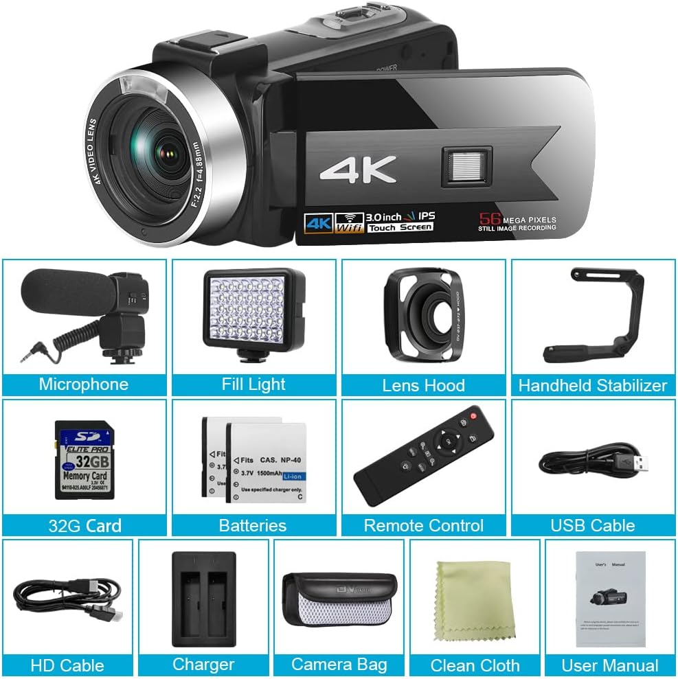 【كاميرا فيديو بدقة 4 كيه 56 ميجابكسل ومتعددة الوظائف】تم تجهيز كاميرا الكاميرا هذه بجهاز استشعار صورة سيموس الأحدث المطورة، والذي يساعد على توصيل صورة تكبير رقمي بدقة 48 ميجابكسل بدقة 4 كيه واضحة وفيديو سلس بدقة فيديو 4K30FPS MP4 ودقة صورة 56M JPEG. يدعم الواي فاي، مضاد للاهتزاز، رؤية ليلية، وظيفة التصوير الفوتوغرافي الفاصل الزمني ووظيفة كاميرا ويب، وظيفة الجمال، شاشة لمس 3.0 بوصة IPS
