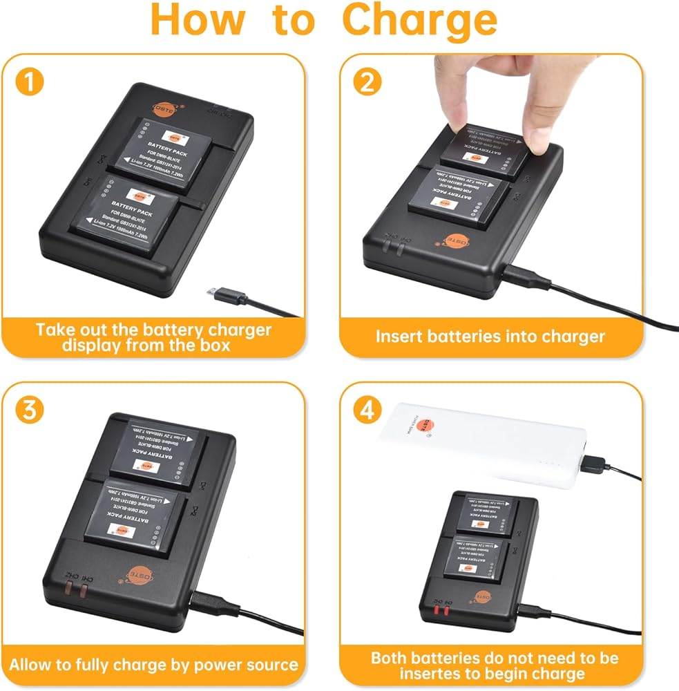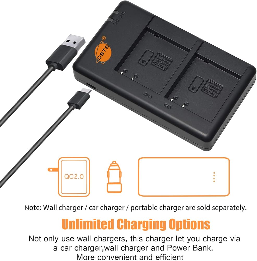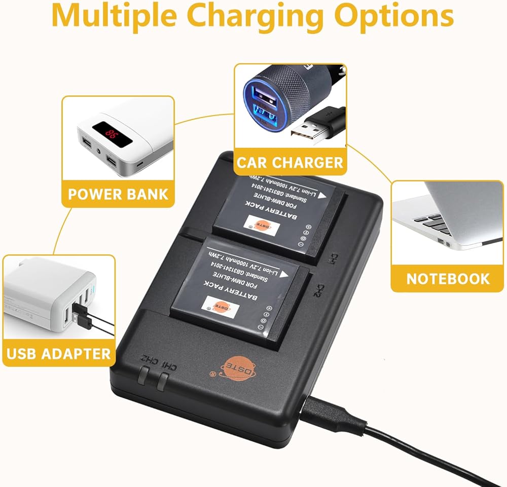 【خيارات شحن متعددة】 يمكن توصيل شاحن USB DMW-BLH7E بأي كابل بمصدر USB 5 فولت مثل الكمبيوتر الشخصي أو شاحن السيارة أو بنك الطاقة وما إلى ذلك لمزيد من خيار الشحن. باستخدام كابل Micro USB الشائع، يمكنك شحن بطارياتك في كل مكان ولا تقلق أبدًا بشأن نفاد الطاقة.