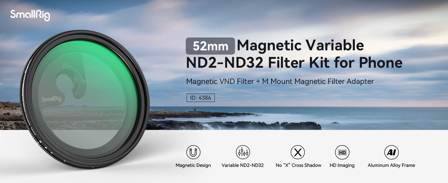 SmallRig 52mm مجموعة مرشح ND المغناطيسي المتغير، ND2-ND32 (1-5 توقفات) مرشح VND مع محول مرشح M Mount، No X Cross HD مجموعة مرشح كثافة محايدة للزجاج البصري للهاتف- 4386