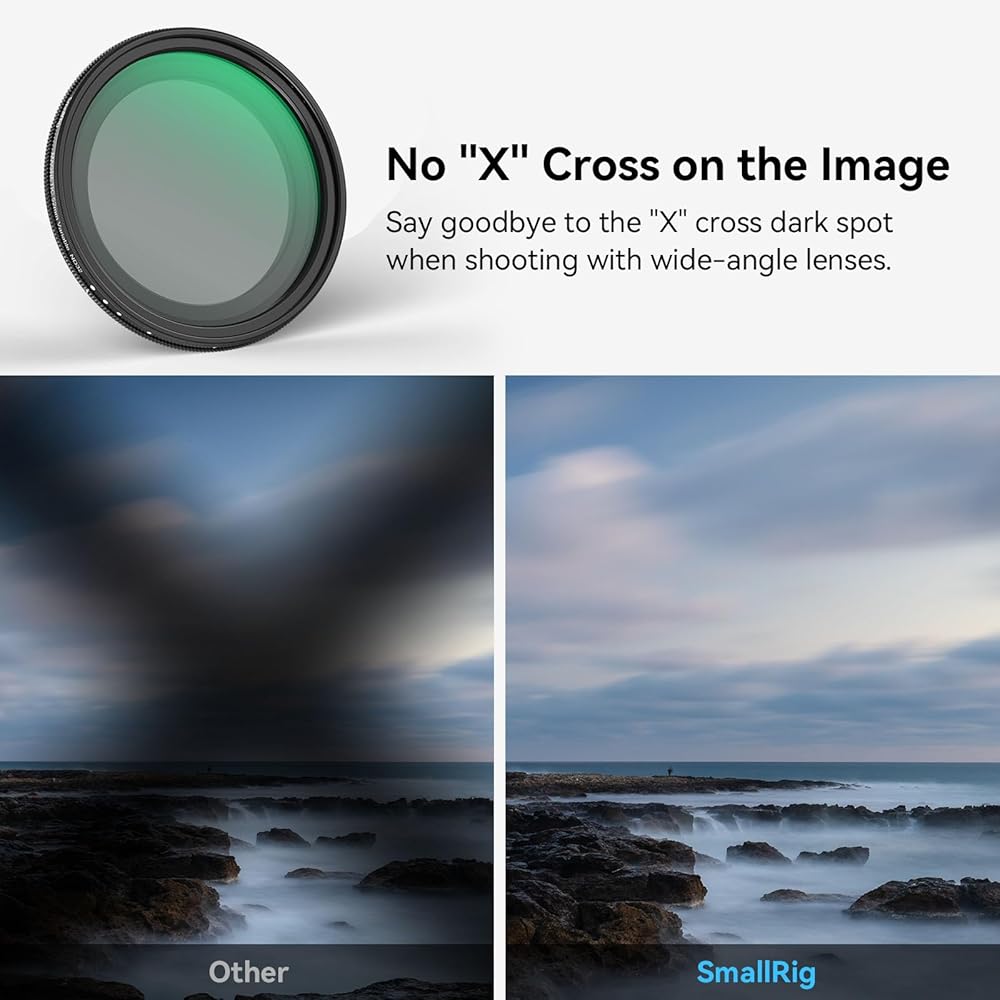 【لا يوجد تقاطع × في الصورة】تصميم توقف صلب دوار عند ND2 وND32 للتحكم الأكثر دقة في التصوير. لا تقلق بشأن النقطة المظلمة X المتقاطعة عند التصوير باستخدام عدسات واسعة الزاوية.
