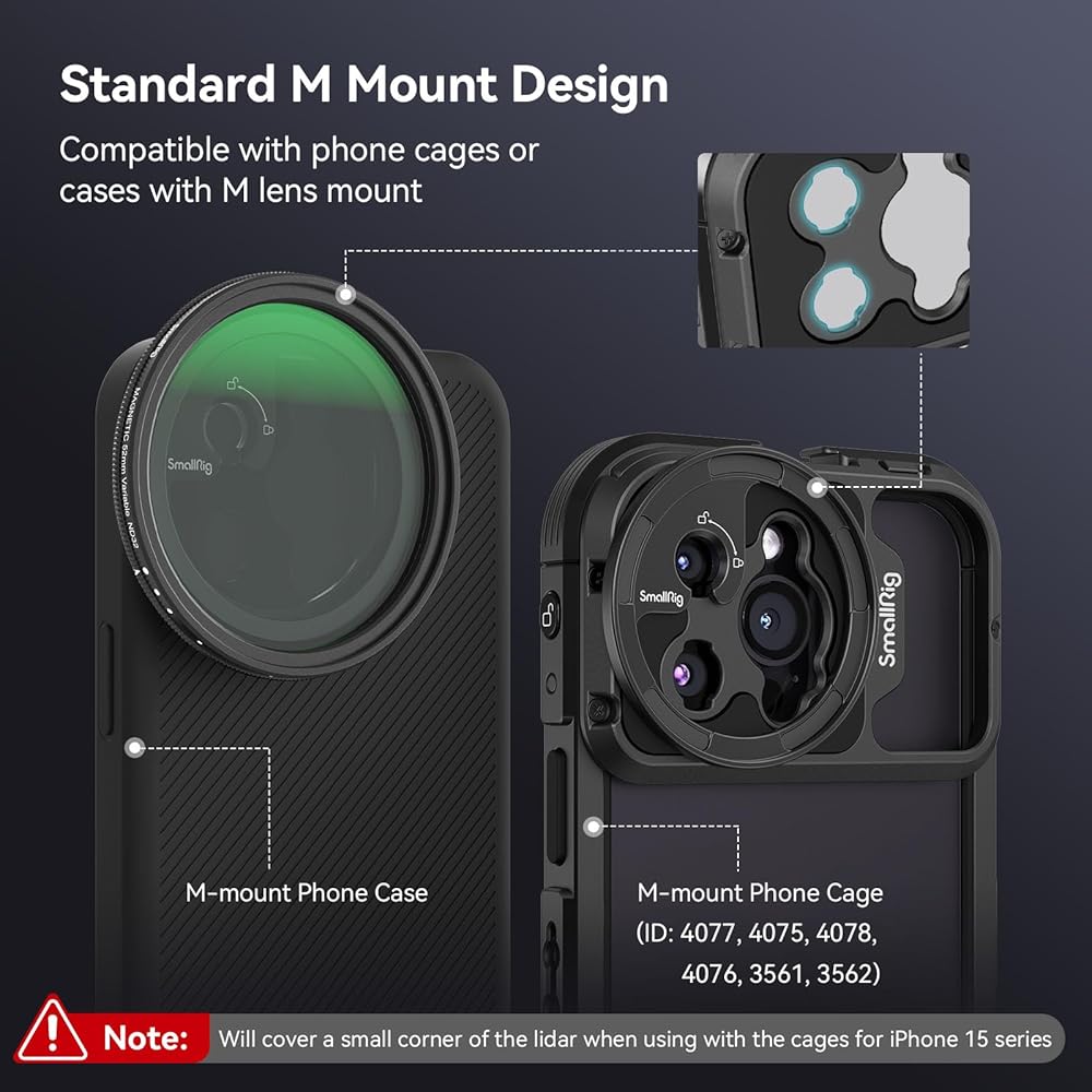【تصميم حامل M قياسي】حلقة الفلتر المغناطيسية مناسبة لجميع أقفاص/حافظات الهاتف المزودة بحامل M. على سبيل المثال، مناسب لقفص الهاتف SmallRig 4077 / 4075 / 4078 / 4076 / 3561 / 3562، لجراب الهاتف Moment M، وما إلى ذلك. يعتمد الحامل تصميمًا سريع التحرير لسهولة التركيب.
