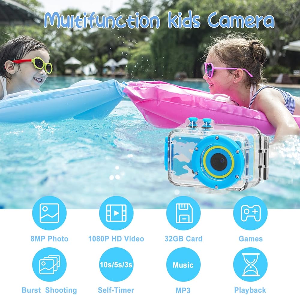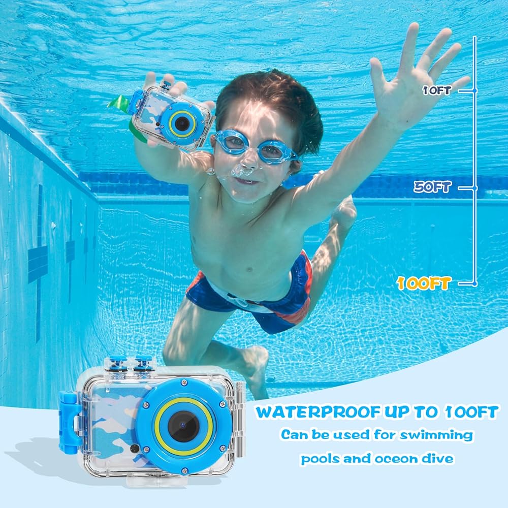 • 【كاميرا للأطفال تحت الماء】تأتي كاميرا الأطفال مع حافظة مقاومة للماء ومتينة مضادة للصدمات، ويمكن لأطفالك التقاط صور مذهلة تصل إلى 30 مترًا (100 قدم) تحت الماء. مثالية للسباحة وركوب الأمواج والغوص وما إلى ذلك. نصائح مهمة: لا تفتح الحافظة المقاومة للماء تحت الماء.