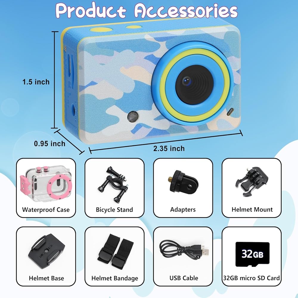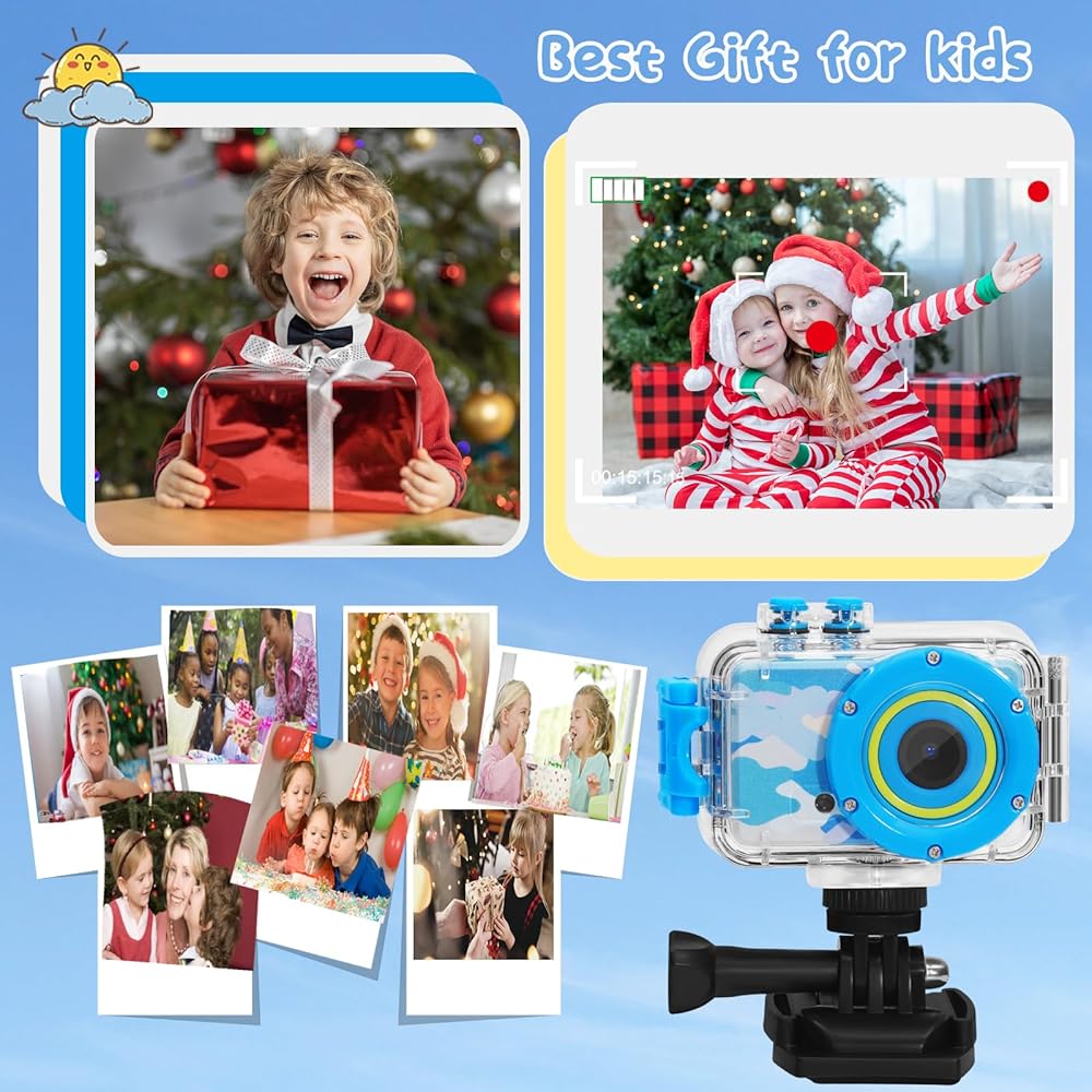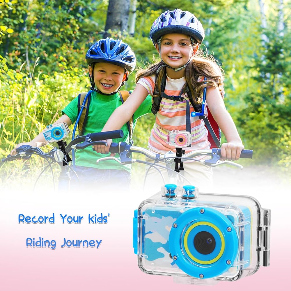 • 【استكشاف المزيد من الوظائف】هذه الكاميرا سهلة الاستخدام وصغيرة الحجم. يمكن لأطفالك تصوير مقاطع فيديو تحت الماء وإرفاقها بمقود الدراجة لتسجيل رحلتهم. يأتي مزودًا بكابل USB يسمح لك بنقل الصور ومقاطع الفيديو إلى جهاز لمشاركتها مع العائلة والأصدقاء.