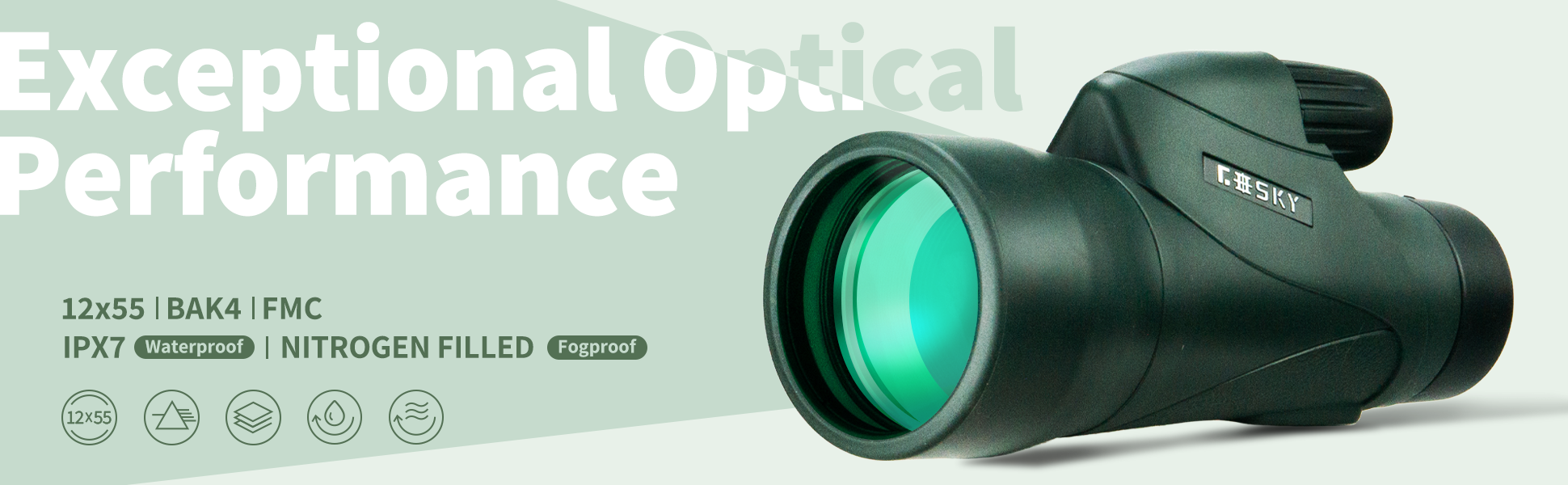 【12× Magnification & 55mm Objective Lens】12×55 high power magnification and 5.3° wide field of view monocular, which is the best magnification for distance watching providing a large field of view up to 265 feet/1000 yards.