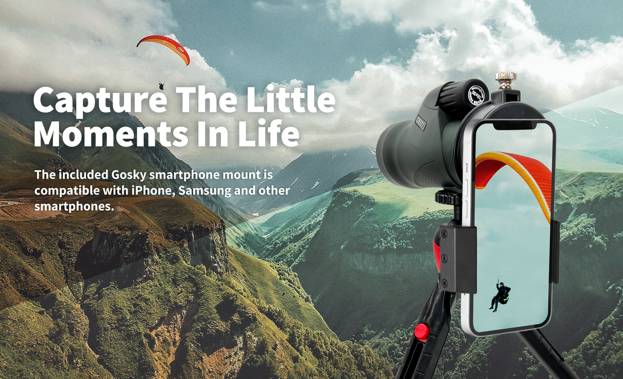 【Ergonomic Design and Waterproof】The IPX7 Nitrogen-filled design makes the monocular waterproof, fog-proof, dustproof and shockproof regardless of weather conditions. High-grade leather and rubber hand strap could prevent the lightweight monocular scope from slipping out your hand.