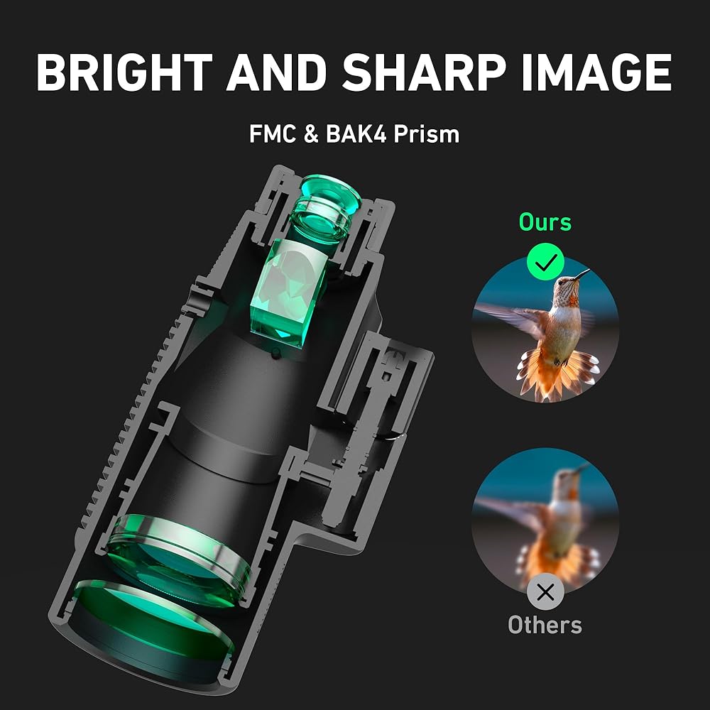 【Excellent BAK-4 Prism and FMC Lens】 The HD monocular telescope uses 17mm BAK-4 optics prism and FMC (Fully Multi-Coating) lens, which could increase the monocular's light transmittance and unnecessary light reflection, delivering clear and sharp pictures. Provide you with true colors of colorful and vivid view.