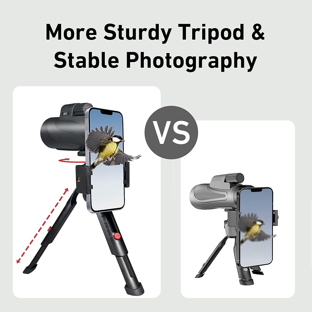 【Upgraded Strudy Tripod and Phone Adapter】 360° rotatable tripod than others ensure stable, brighter and shakeless images. The phone holder is compatible and easy to install with any model of smartphone, including but not limited to iPhone, Samsung, Motorola etc.