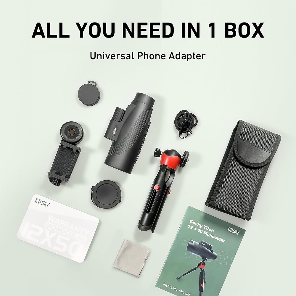 Gosky 15x52 HD أحادي العين، أحادي للبالغين عالي الطاقة مع حامل ثلاثي القوائم، أحادي مدمج مع عدسة BAK4 Prism & FMC، جهاز تحكم عن بعد لكاميرا بلوتوث، مناظير أحادية للصيد ومشاهدة الطيور والمشي لمسافات طويلة والسفر