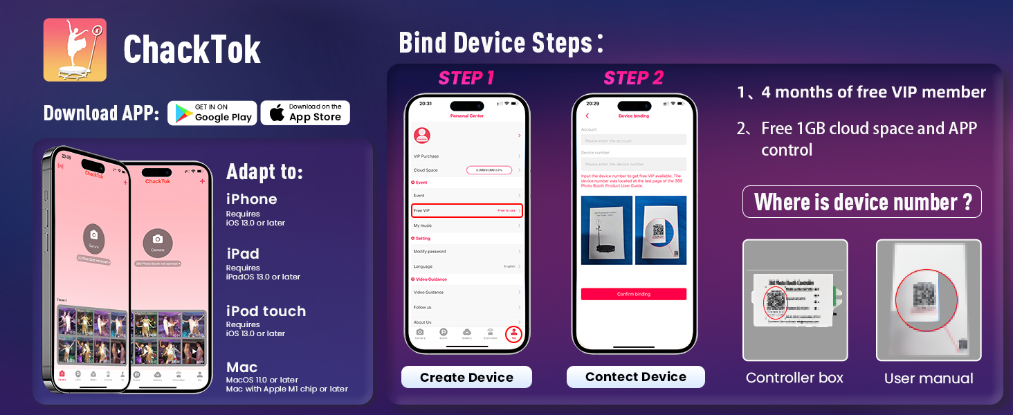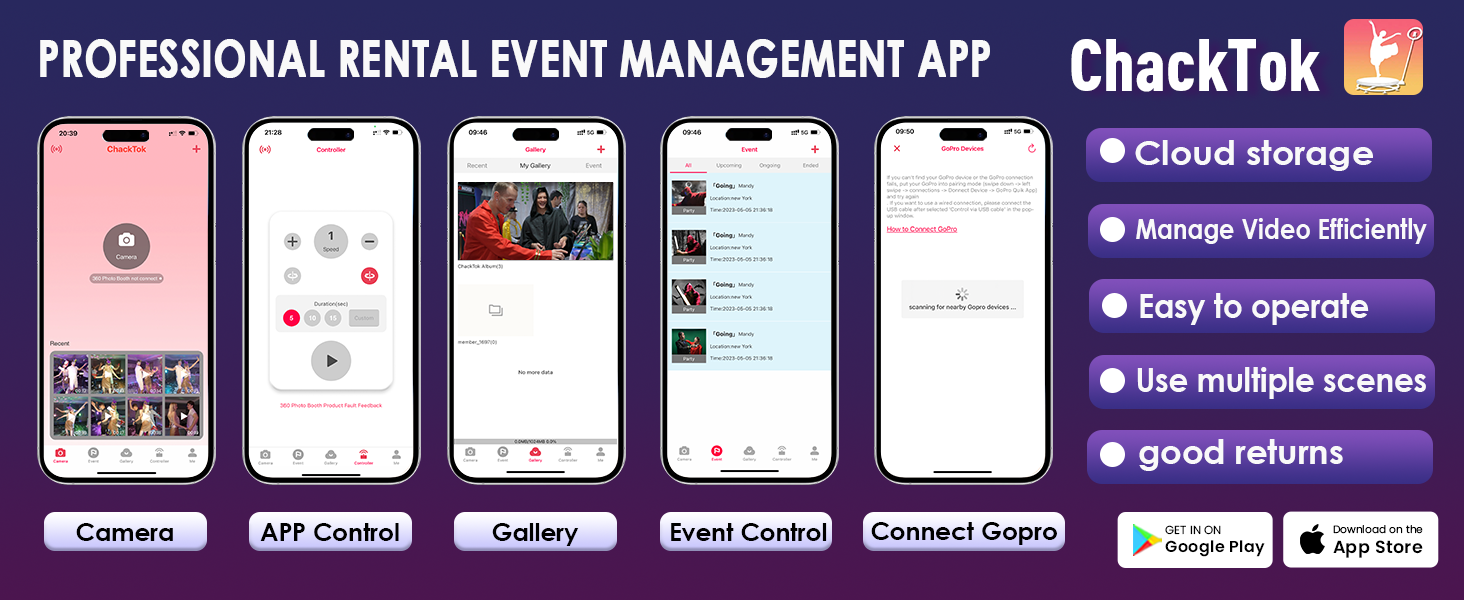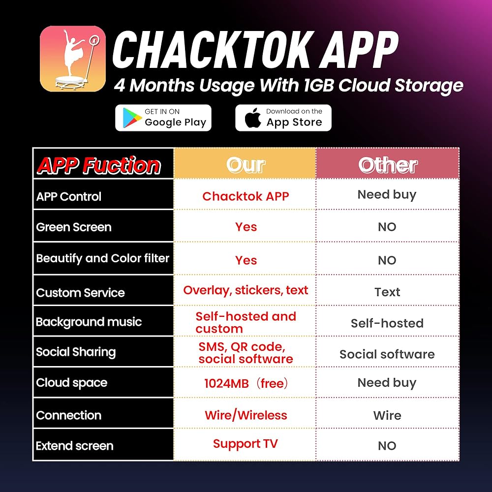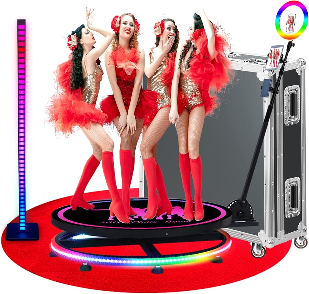 Luxurious configuration and diverse gameplay are waiting for you to explore? Our 360 camera booth machine adds 16 million colors of music-synced LED strips, a 20-inch to 77-inch height range adjustable selfie stick, and a high-quality aluminum tripod to the original configuration.360 photo booth camera with remote control for remote selfie shooting. Simply connect the small remote control to your smartphone, even away from the tripod can also take good pictures.