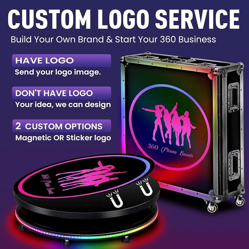 U.S. After-sales team: U.S. shipments, if parts of the product are missing or appear other problems, please contact us in a timely manner, We will solve your problem within 12 hours. 360 photo booth stand also offers LOGO customization services, if a pattern is required to be customized on the turntable, contact us.