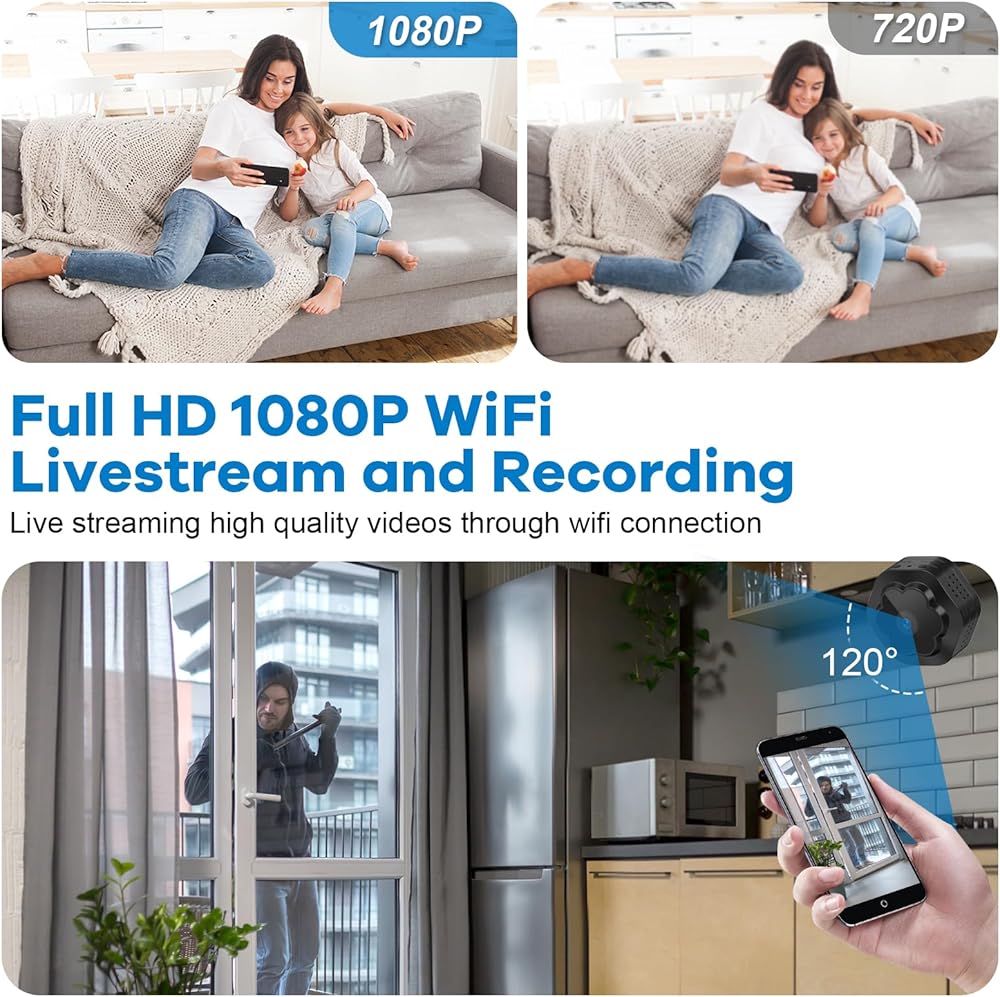 【أصغر كاميرات مخفية للأمان واي فاي】يمكن وضع هذه الكاميرا الخفية للأمان اللاسلكية الصغيرة في أي مكان، بعد توصيلها بجهاز التوجيه، يمكنك عرض الكاميرا الخفية للأمان الصغيرة عن بعد عندما تكون في أي مكان، بدون مسافة محدودة، والحفاظ على أمان المنزل.