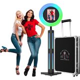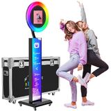 【Photo Booth with RGB Ring Light】This Portable Photo Booth is equipped with RGB ring light, 20+ color lighting modes, each lighting mode can choose 1%-100% brightness. you can adjust the color temperature (2700K-6500K) and brightness (0%-100%) by the remote control. And the angle of the ring light is flexible and adjustable.