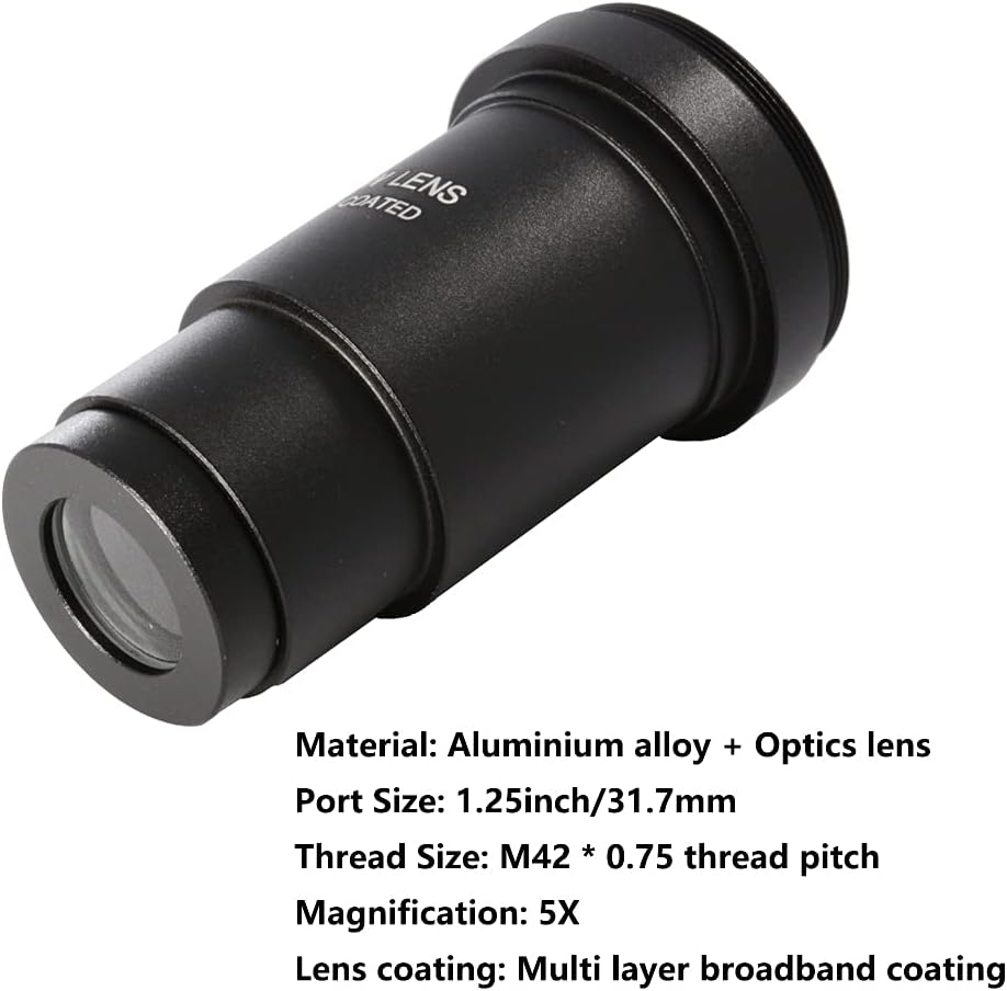 【الواجهة】: واجهة مقاس 1.25 انش مع خيط M42 × 0.75 ملم، والتي يمكن استخدامها لتوصيل الكاميرا للتصوير الفوتوغرافي (ملاحظة: تحتاج إلى شراء حلقة محول حربة مطابقة)