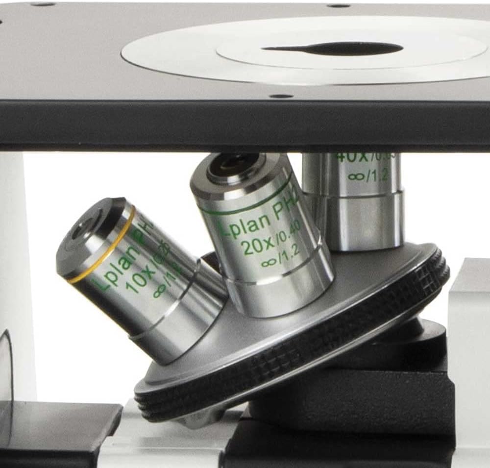 The inverted Oxion Inverso biological microscopes are available for phase contrast applications. Specific objectives compensate the 1.2mm thick bottoms of the petri dishes or culture dishes.