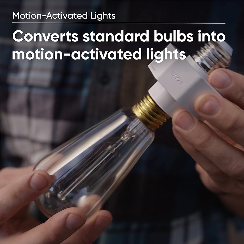 يحول المصابيح القياسية إلى مصابيح أمان تعمل بالحركة. التثبيت سهل مثل تغيير المصباح الكهربائي.