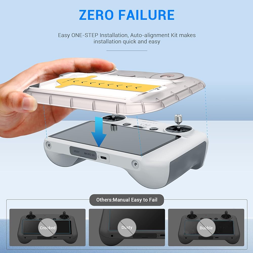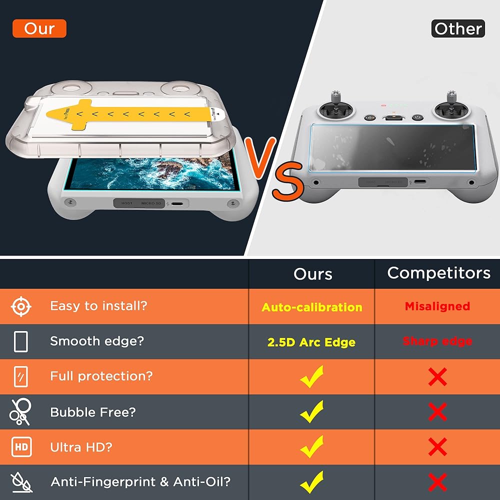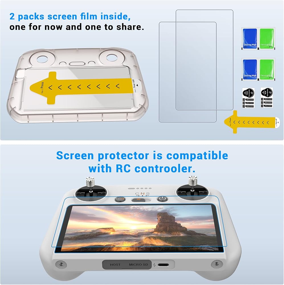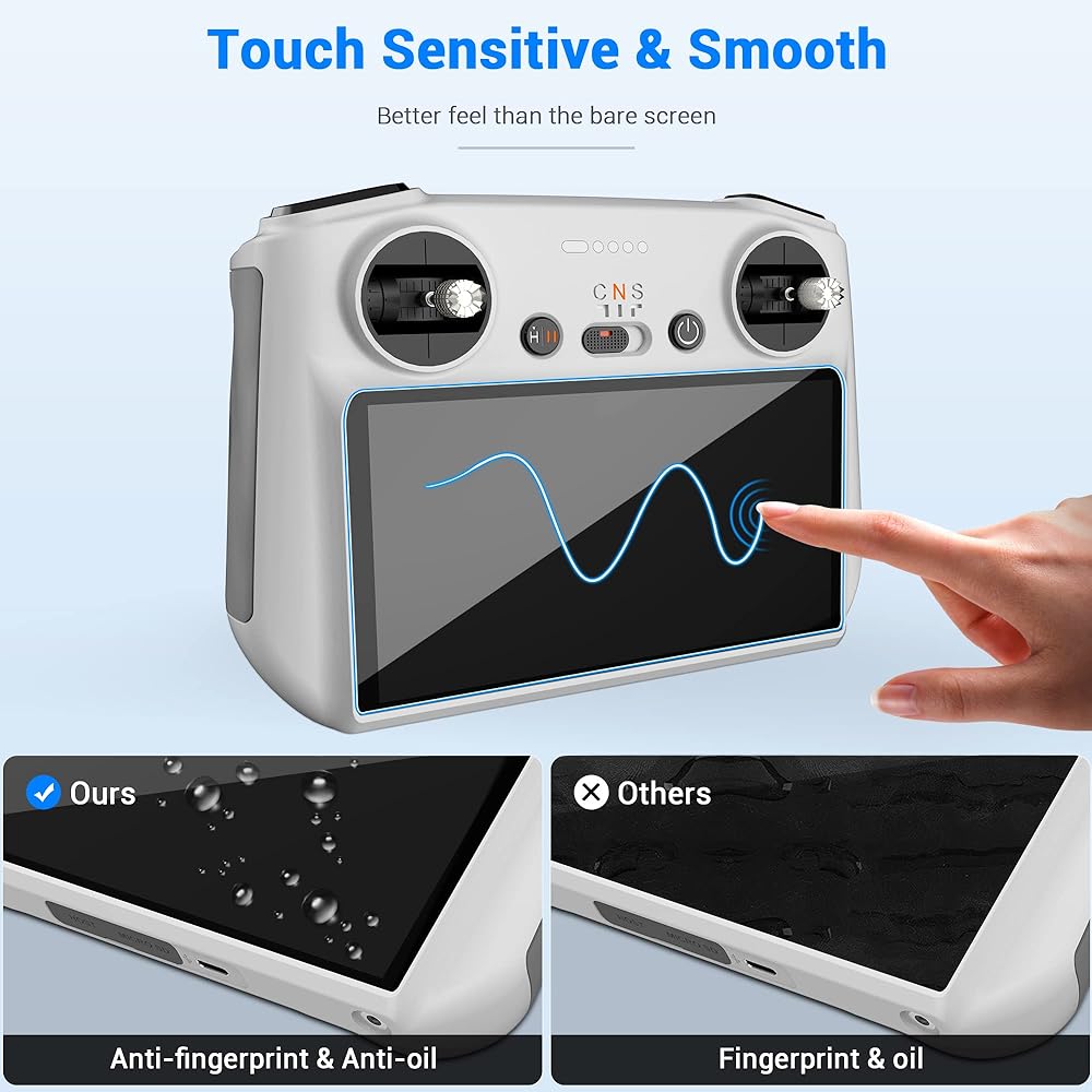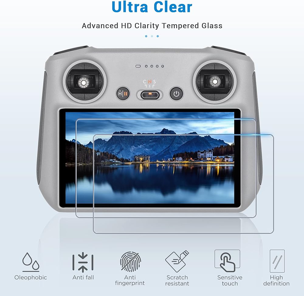 زاوية مقوسة 2.5D: مع حواف معززة، تحمي الزوايا والحواف الضعيفة لشاشة DJI RC الخاصة بك من الرقائق وتمنع التشققات من البدء والانتشار.