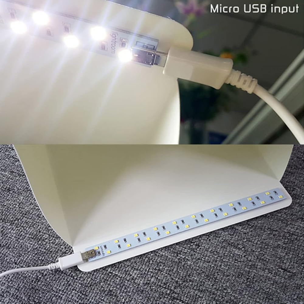 【صندوق استوديو الصور】يوفر صندوق إضاءة الاستوديو هذا مع قطعتين من شريط الإضاءة 20 LED سطوعًا كافيًا للتصوير.