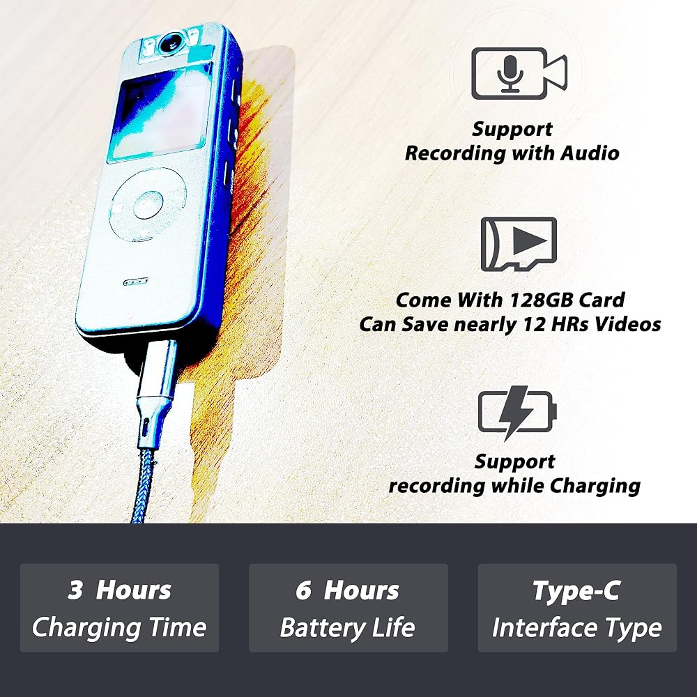 【عمر بطارية 6 ساعات/128 جيجابايت و3 طرق لإعادة التشغيل】كاميرا الجسم مزودة ببطارية قابلة لإعادة الشحن بقدرة 1400 مللي أمبير في الساعة، والتي يمكن أن تدوم ما يقرب من 6-7 ساعات عمل، كما تدعم أيضًا تسجيل الفيديو على مدار الساعة طوال أيام الأسبوع عند توصيل بنك الطاقة/الطاقة. ، يساعدك على مراقبة كل مكان. ①تحتوي كاميرات الجسم لدينا على بطاقة مدمجة بسعة 64 جيجابايت، لدعم حفظ التسجيل لفترة طويلة ويتم التعرف عليها بواسطة الهواتف المحمولة/أجهزة الكمبيوتر المحمولة/الكمبيوتر الشخصي لإعادة التشغيل. ②وضع النقطة الساخنة للكاميرا يصل إلى 32 قدمًا، مع تطبيق لإعادة التشغيل. ③إعادة التشغيل على الشاشة.